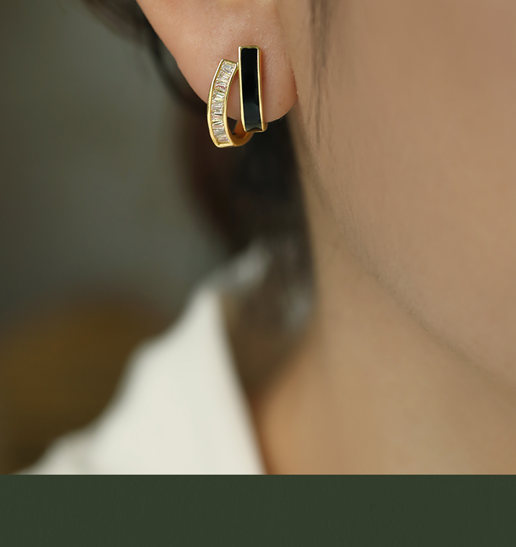 Oflye潮流饰品 轻奢耳环女时尚耳圈锆石耳钉新款独特小众耳饰