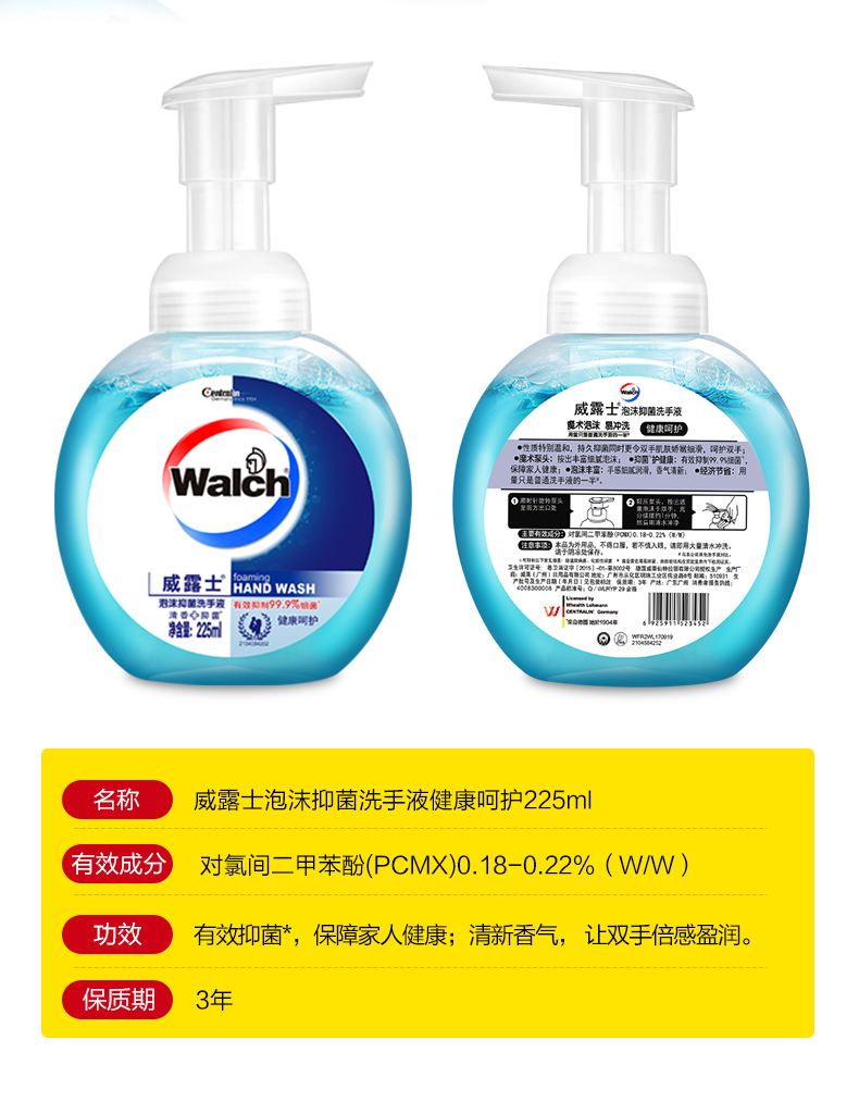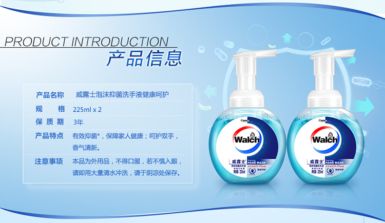 威露士泡沫抑菌健康呵护洗手液225*2瓶