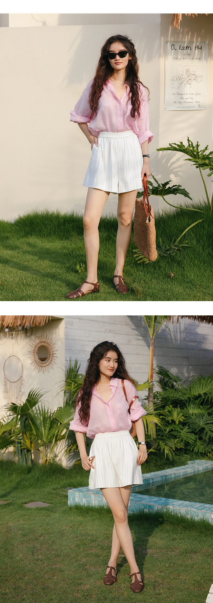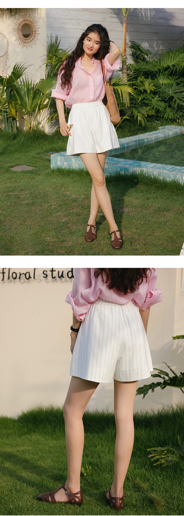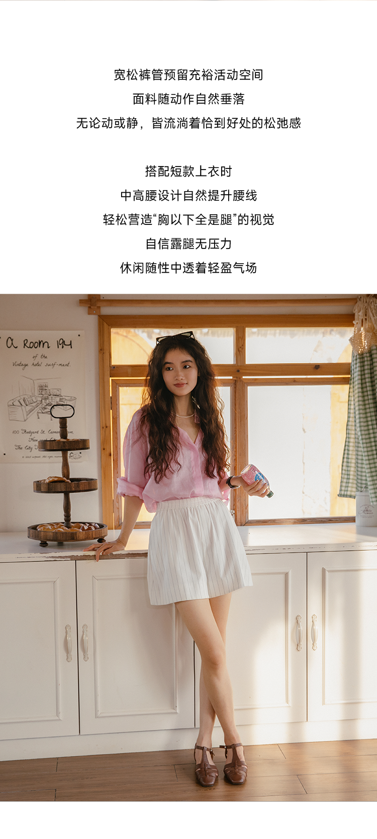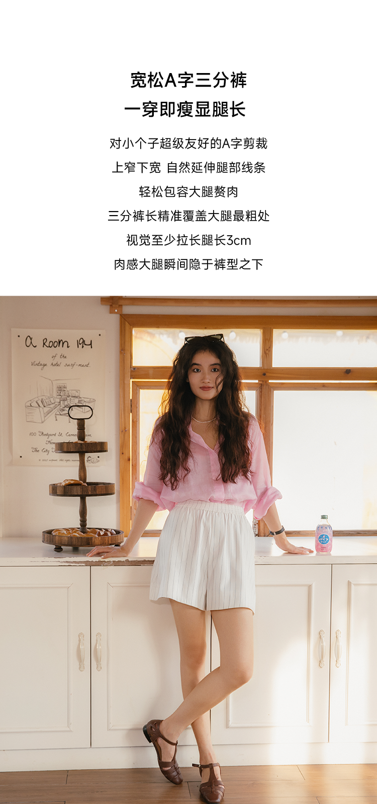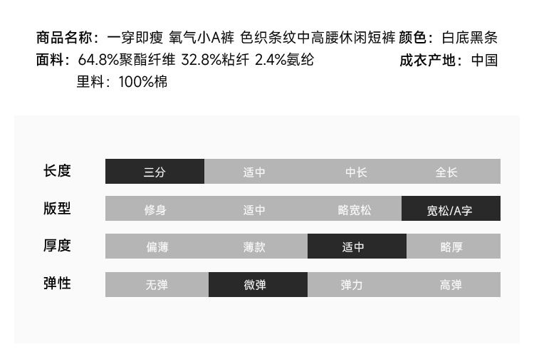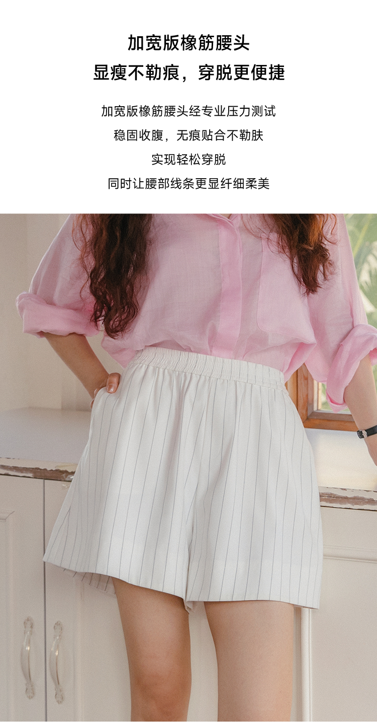 一穿即瘦 氧气小A裤 色织条纹中高腰休闲短裤FCF2SOT076