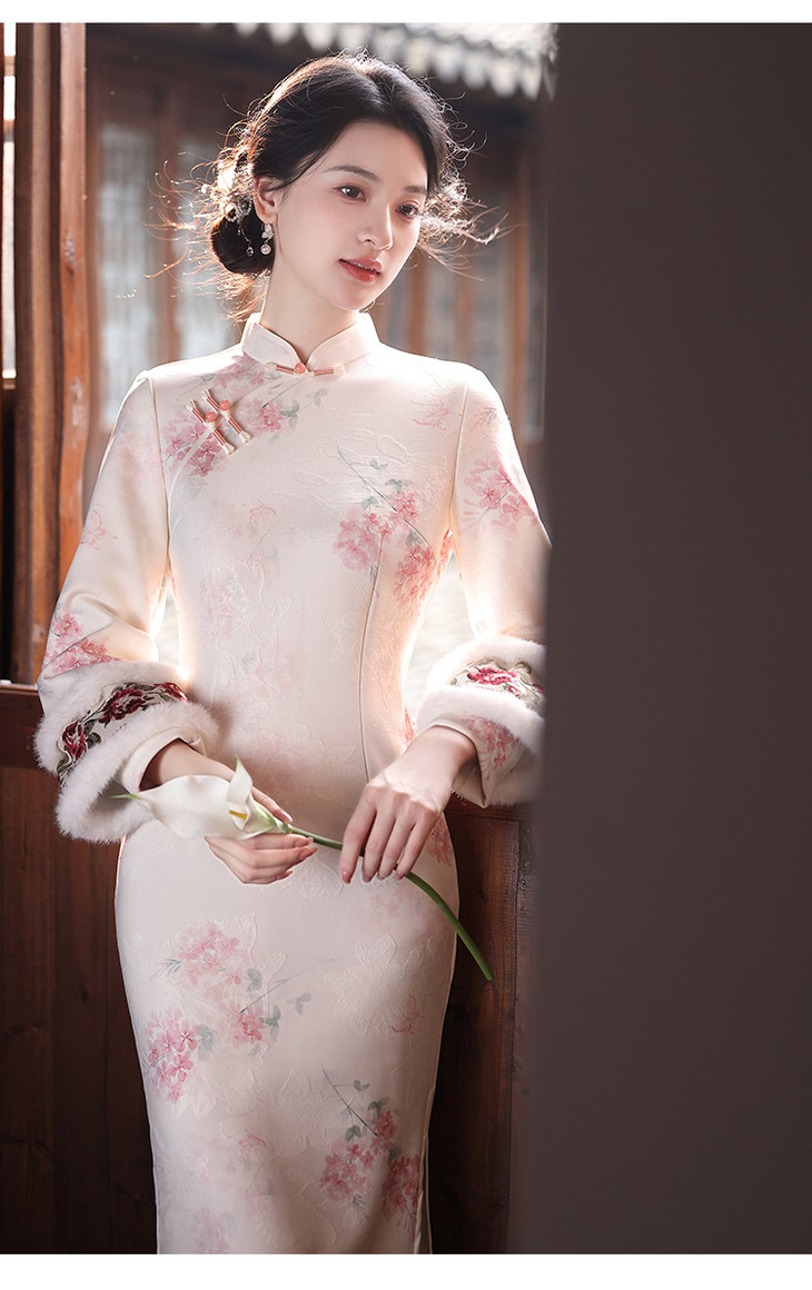 【暗香盈袖】新款新中式绝美粉色倒大袖旗袍冬装年轻款保暖加绒LSB4293 商品图4