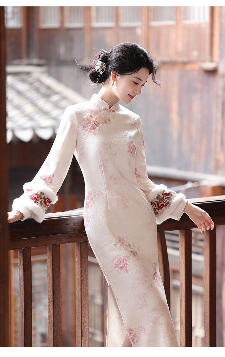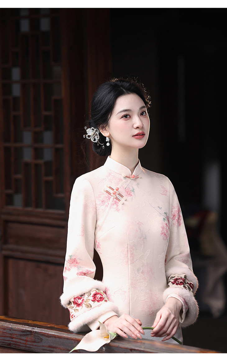 【暗香盈袖】新款新中式绝美粉色倒大袖旗袍冬装年轻款保暖加绒LSB4293 商品图2