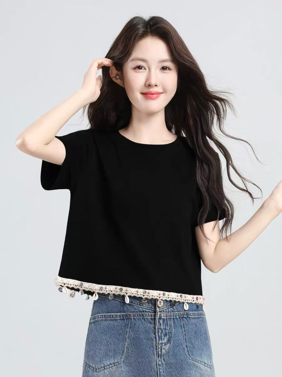 【新品特卖】25096波西米亚重工工艺亮片短袖T恤-喜出