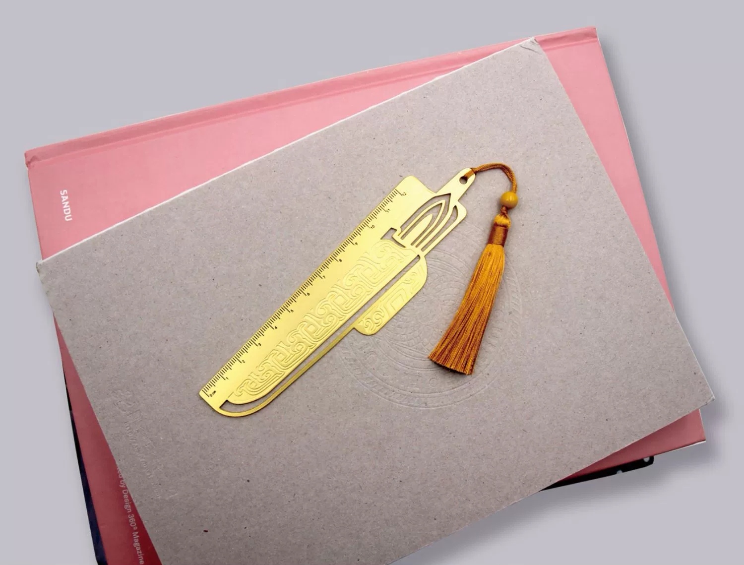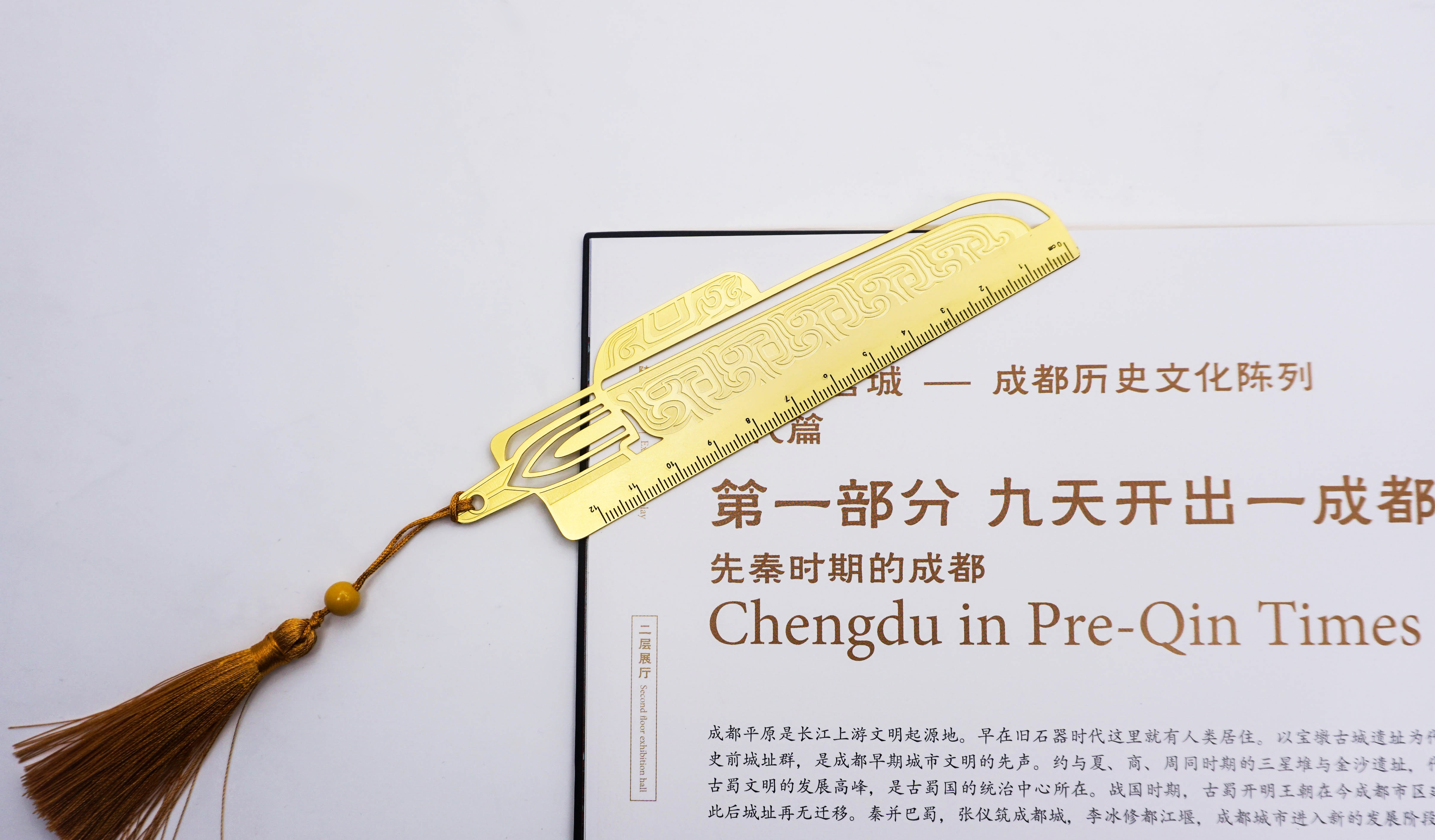 战国蚕纹带鞘双剑铜尺 黄铜材质,采用激光雕刻工艺制作而成,能够精准展现战国蚕纹带鞘双剑的独特线条和别样的气质。
