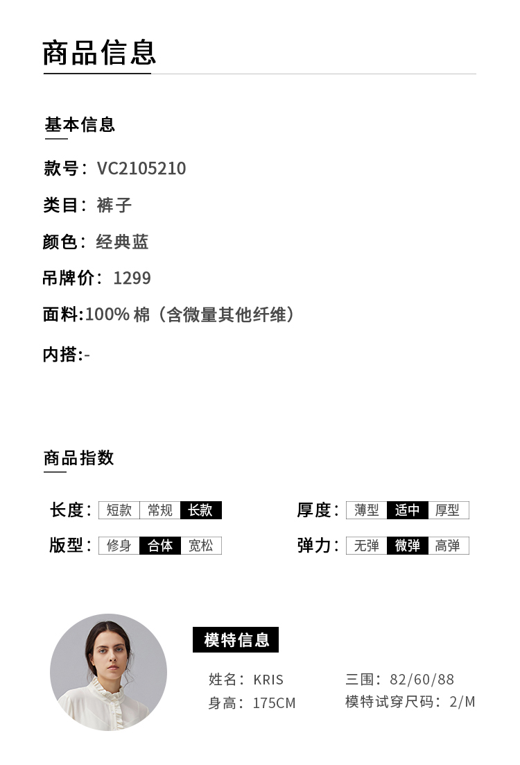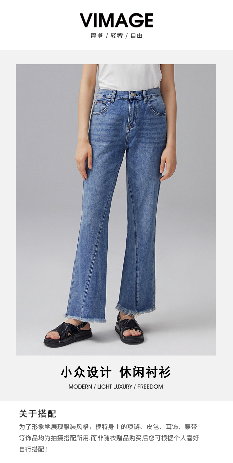 VIMAGE纬漫纪新款时尚通勤休闲显瘦百搭牛仔裤VC2105210