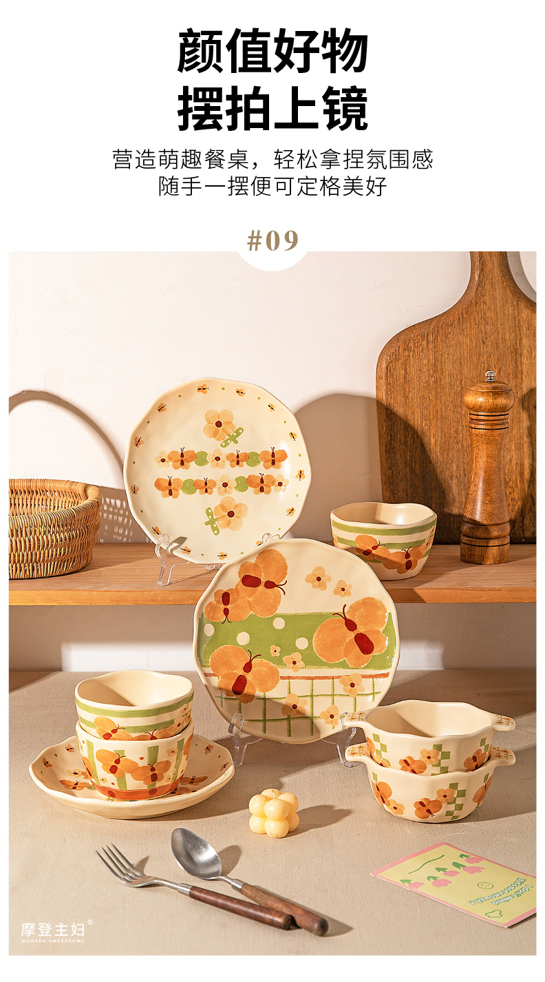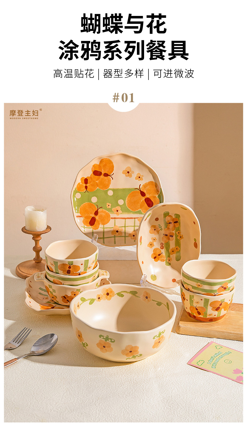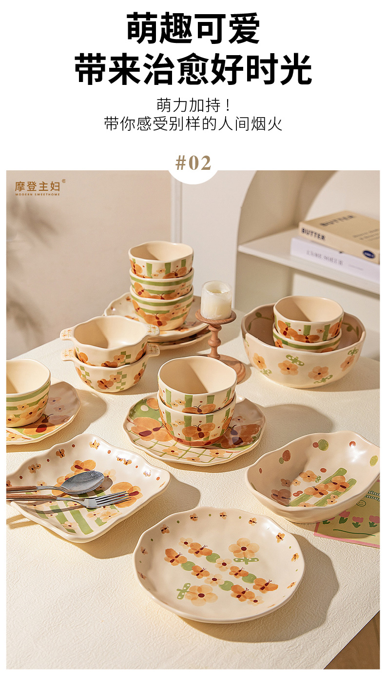 摩登主妇可爱陶瓷碗碟餐具饭碗家用碗具盘子特别好看的酸奶碗汤碗