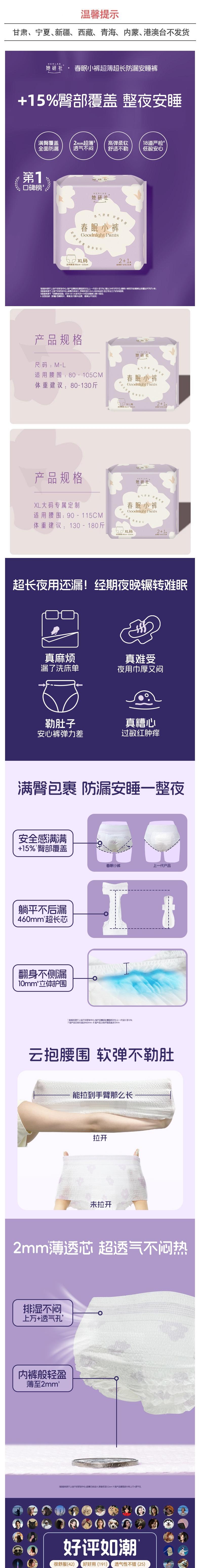 她研社 春眠小裤安睡裤安睡裤M-L码3条/包 6974354665007