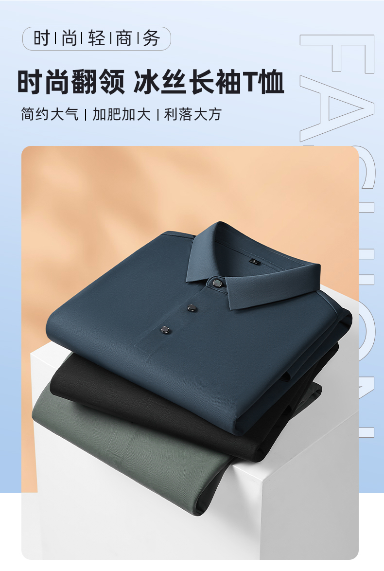 【新款DDP】大依优型大码弹力长袖Polo衫翻领男装加肥加大体恤大号上衣胖子弹力休闲商务
