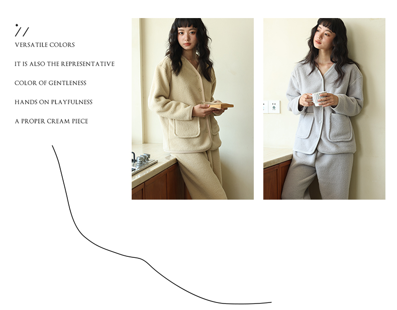 KEMU壳木毛绒绒家居服套装9822 双面绒毛柔软舒适亲肤保暖 宽松版型不挑身材 三色可选