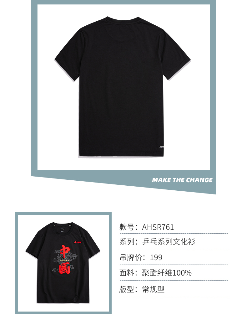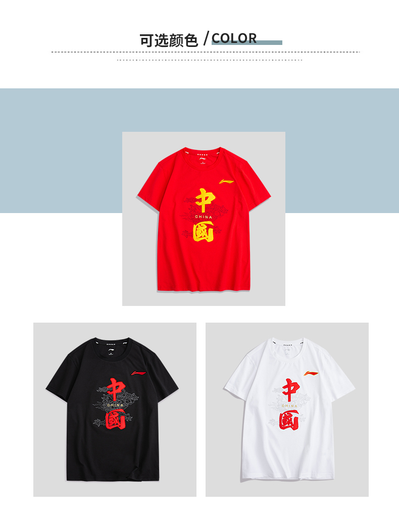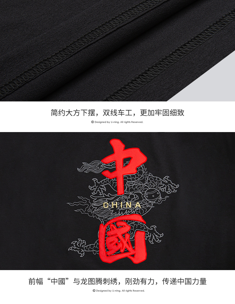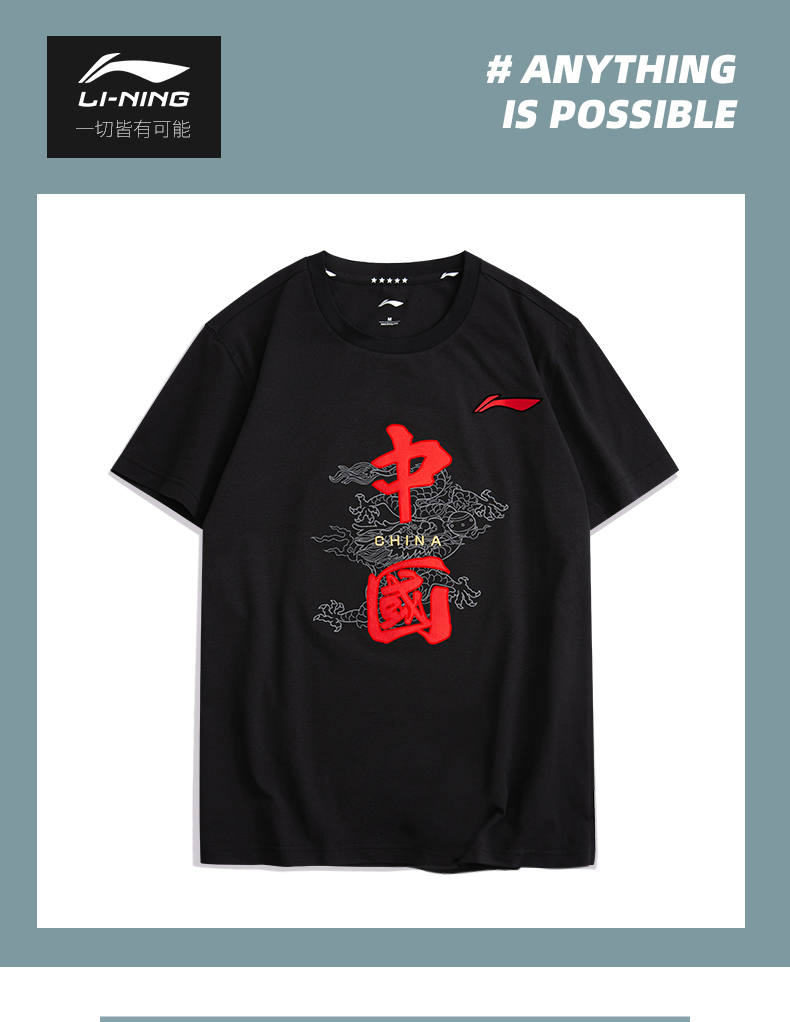 中国李宁短袖夏季乒乓系列中国龙图案男子比赛运动T恤AHSR761/763