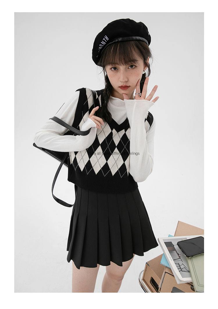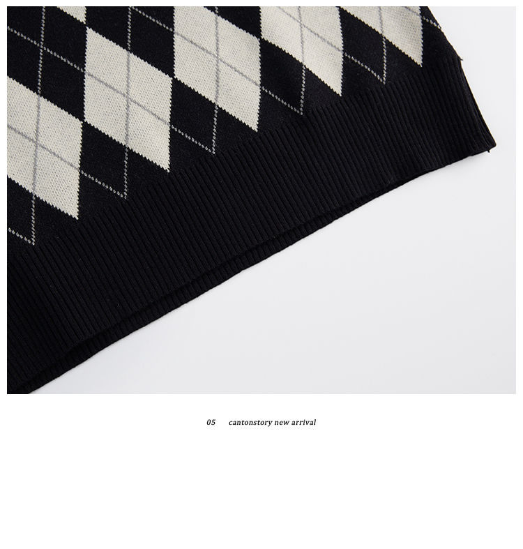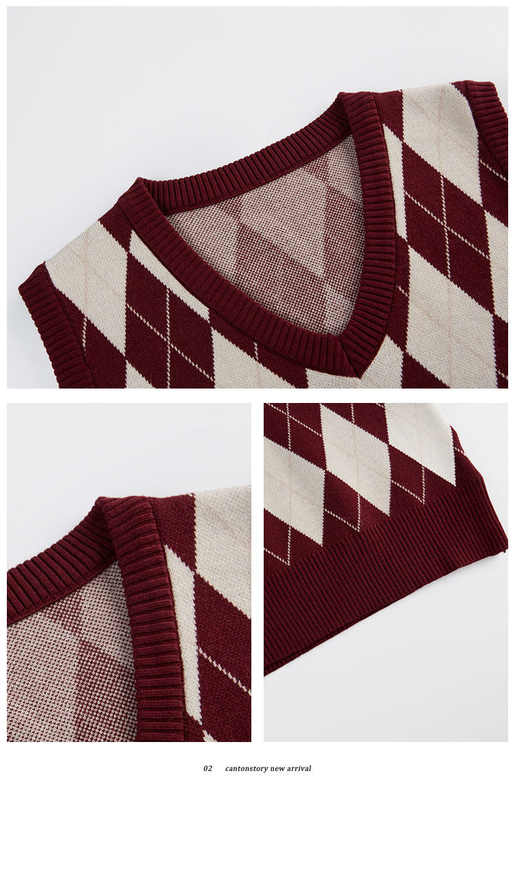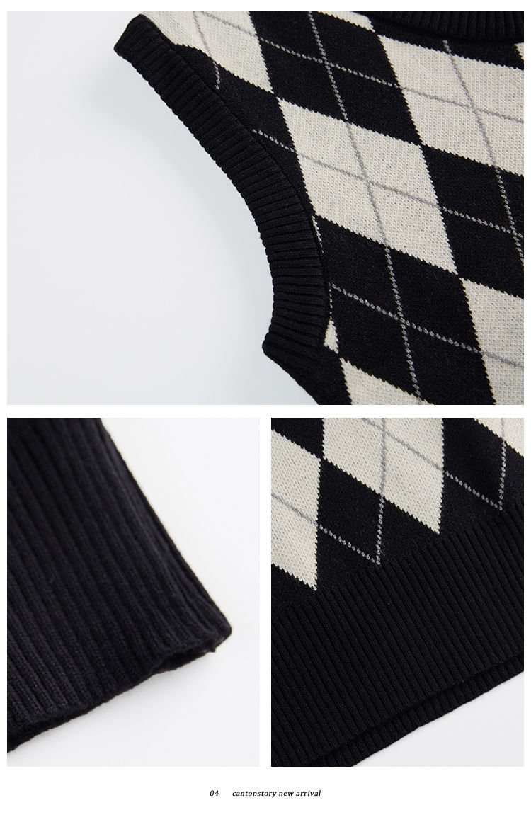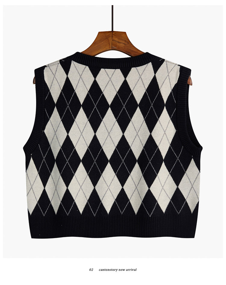 v领菱格马甲女外搭春秋季2021年新款复古叠穿针织背心短款坎肩