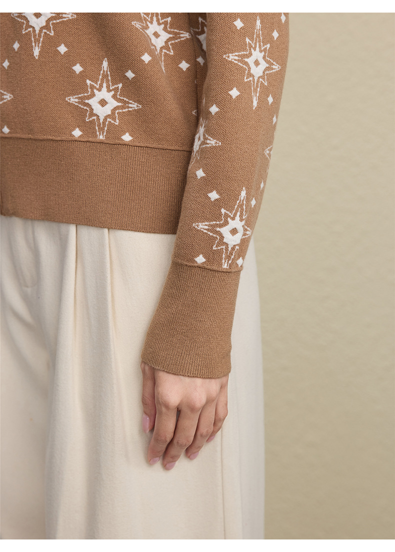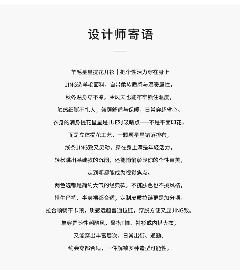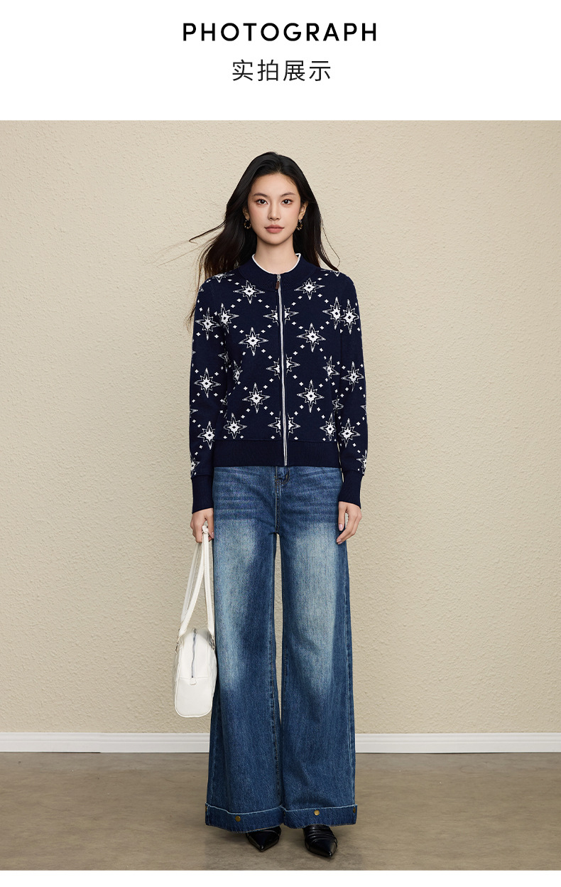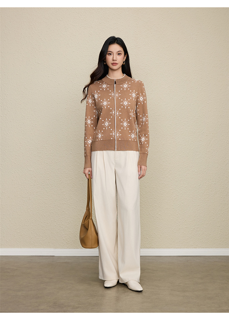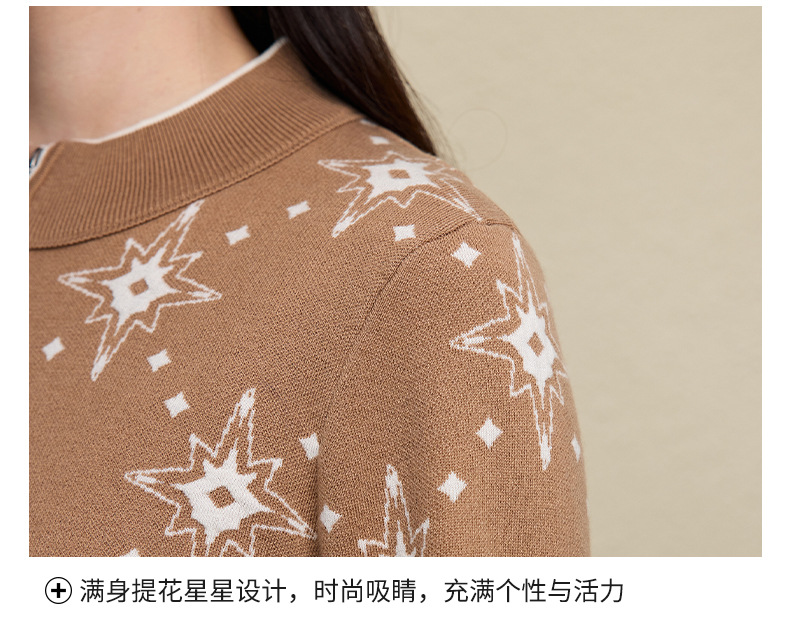 「自」全新升级【铂金会员284/天猫379/差价95】(14202)洛诗琳重工提花星星图案羊毛开衫2025秋冬立领拉链外套女