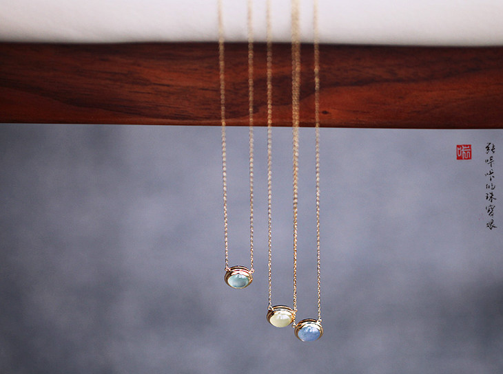 这系列叫做小灯系列,虽然蛋面不是极品的玻璃种,只是一般冰种翡翠,但圆润饱满,略有荧光。淡淡的辉光,它并不是成功者炫耀财富的工具,却是我们在成长的道路上,在迷雾重重的夜晚,一盏小小的灯光,不亮,却给了我最大的温暖,给了我最需要知道的方向。