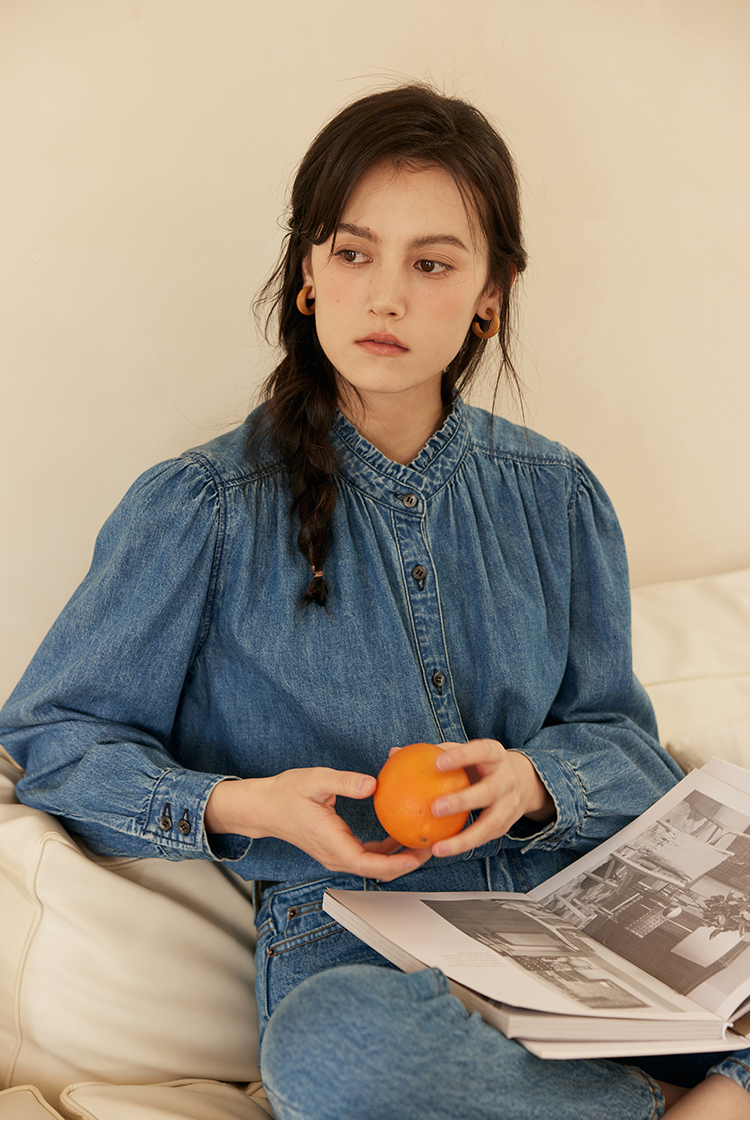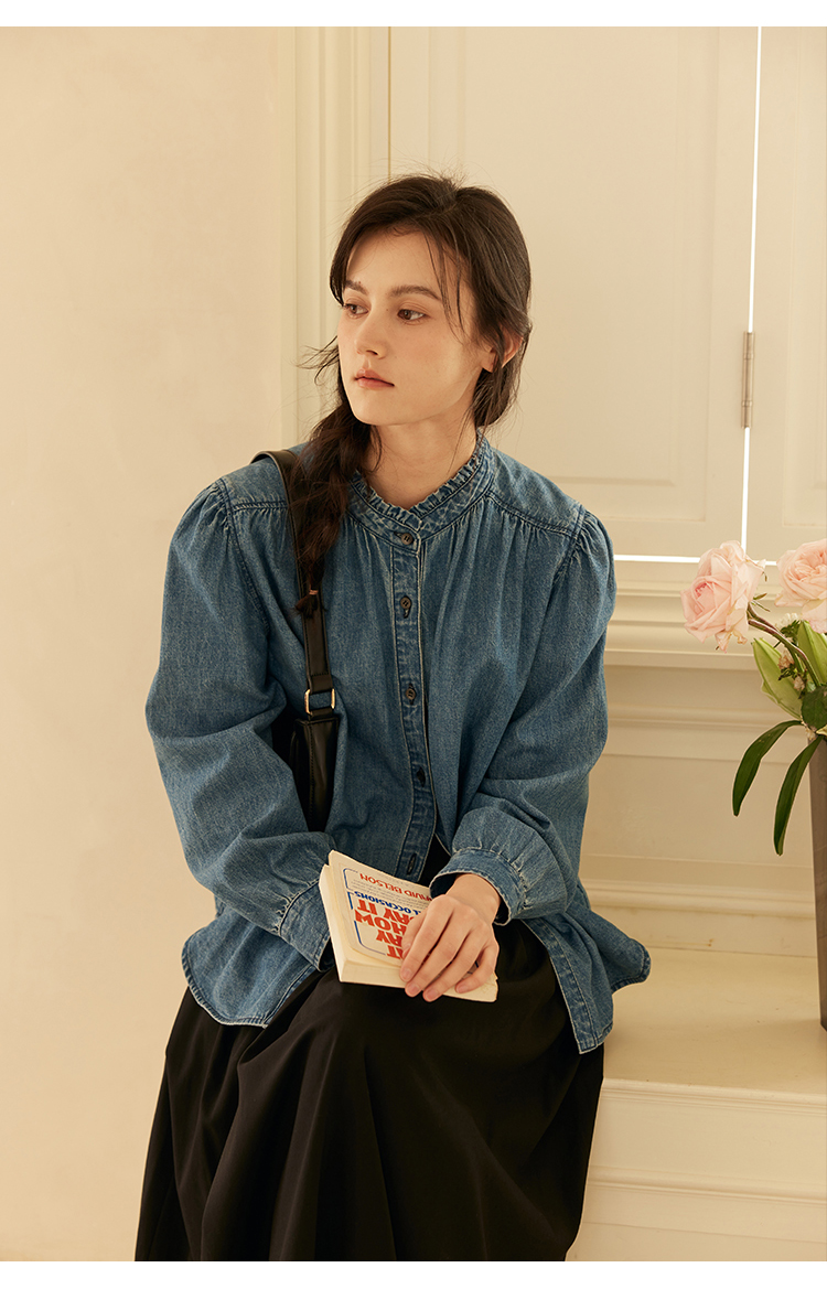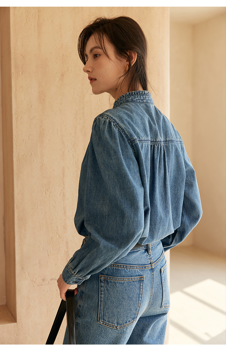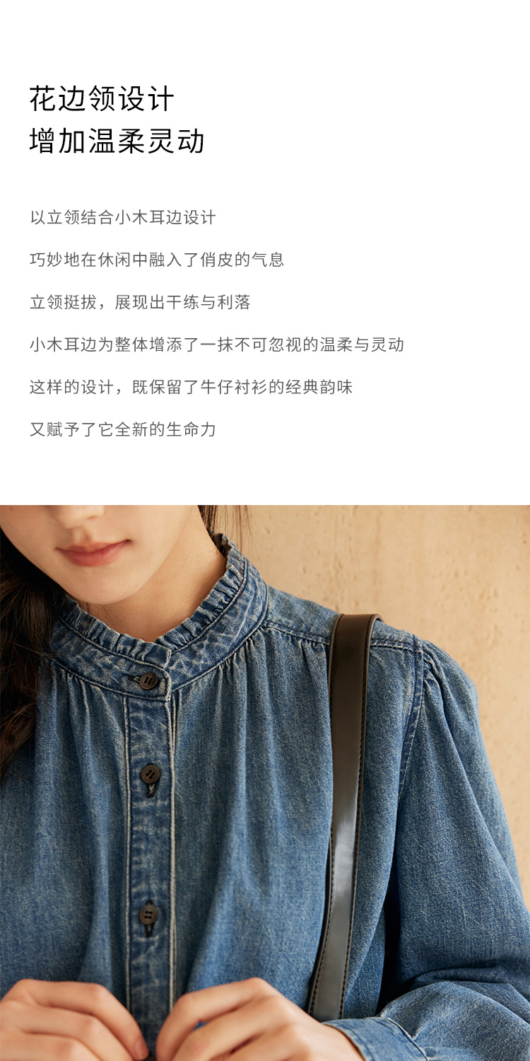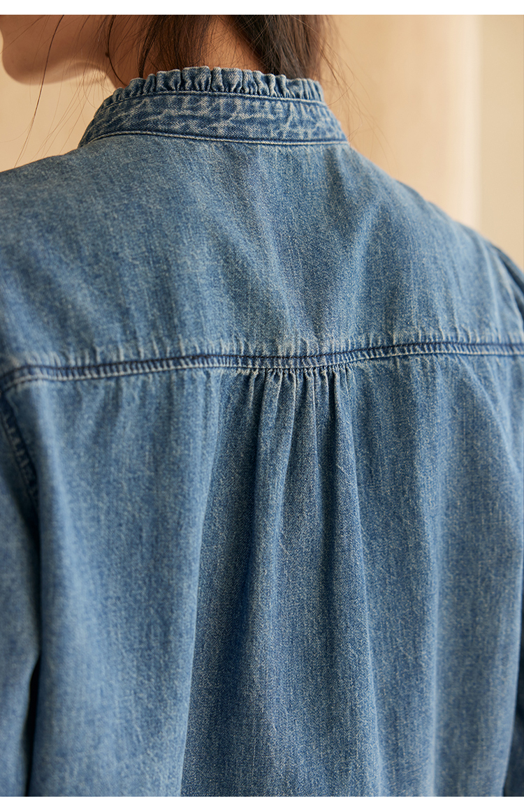HeyDress花边领百搭牛仔衬衫