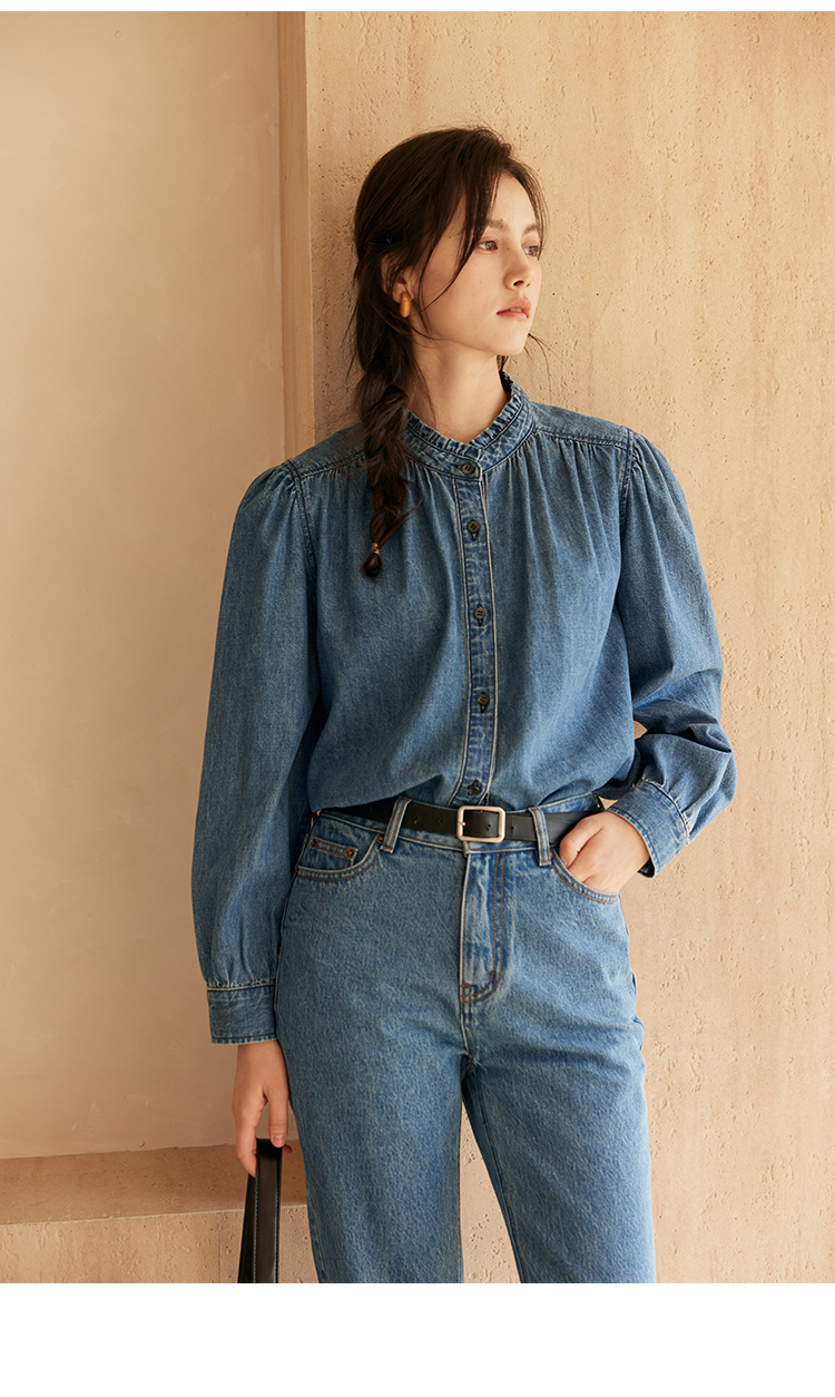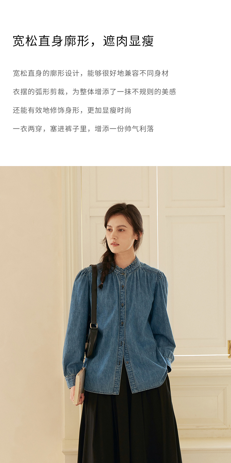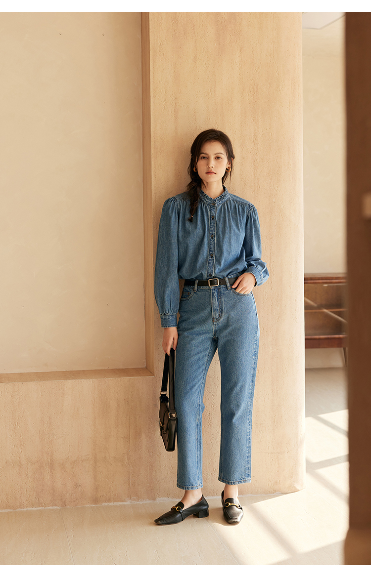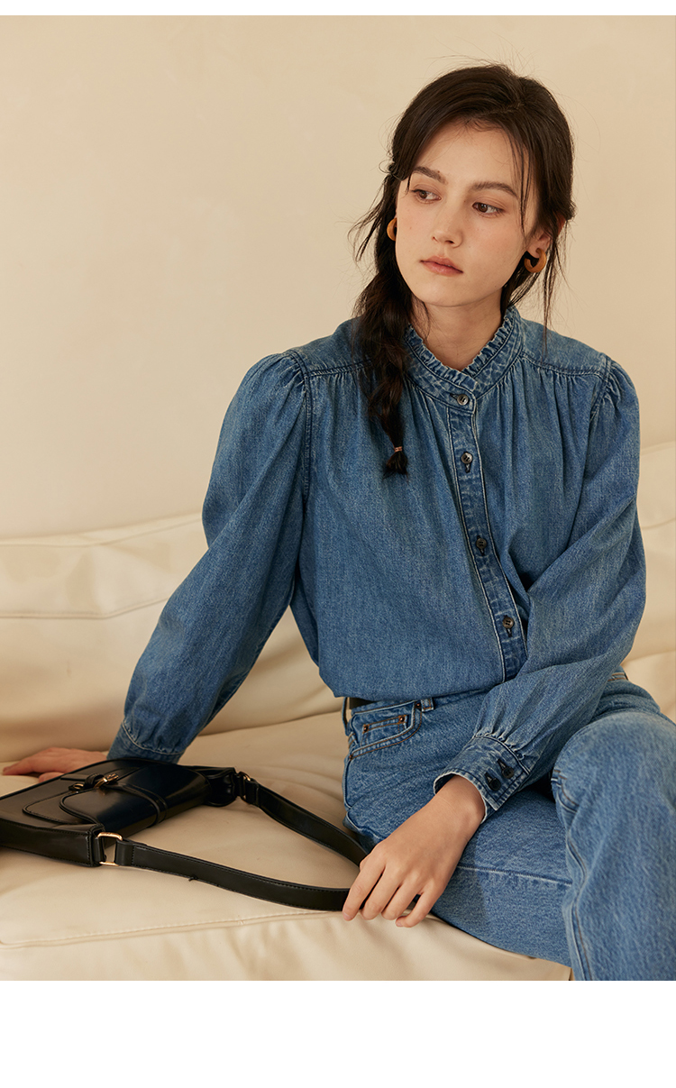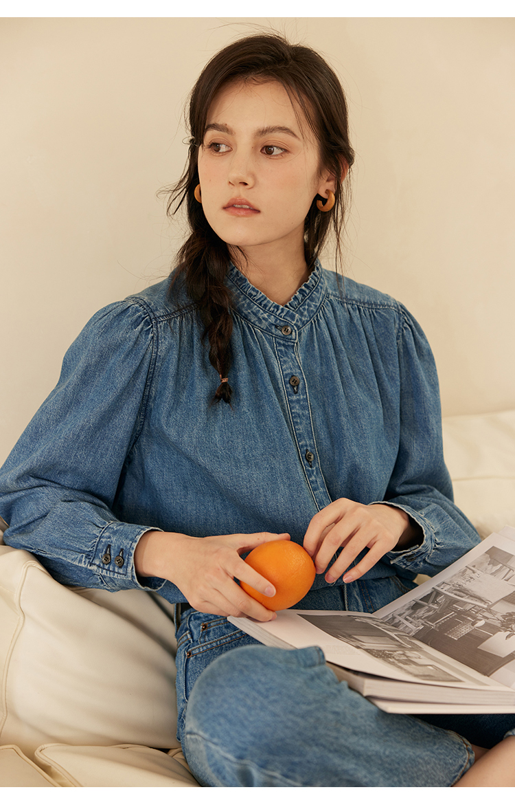 HeyDress花边领百搭牛仔衬衫