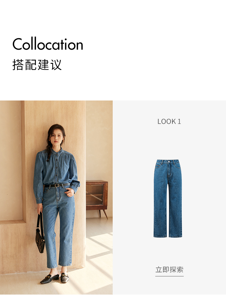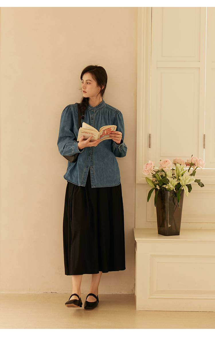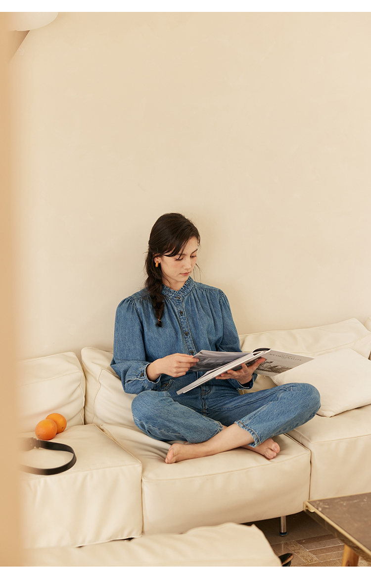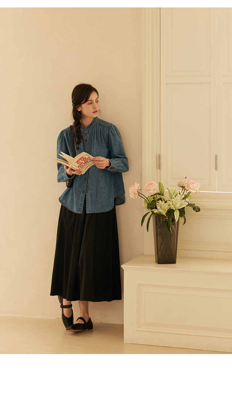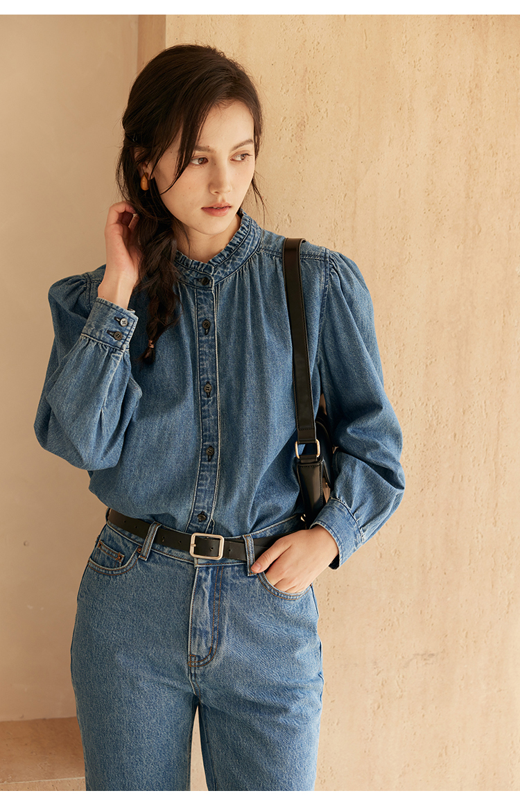HeyDress花边领百搭牛仔衬衫
