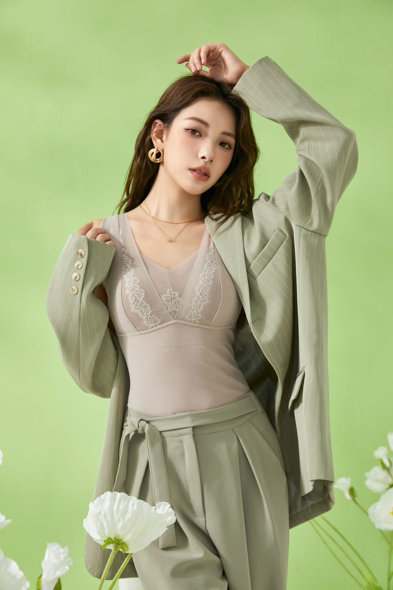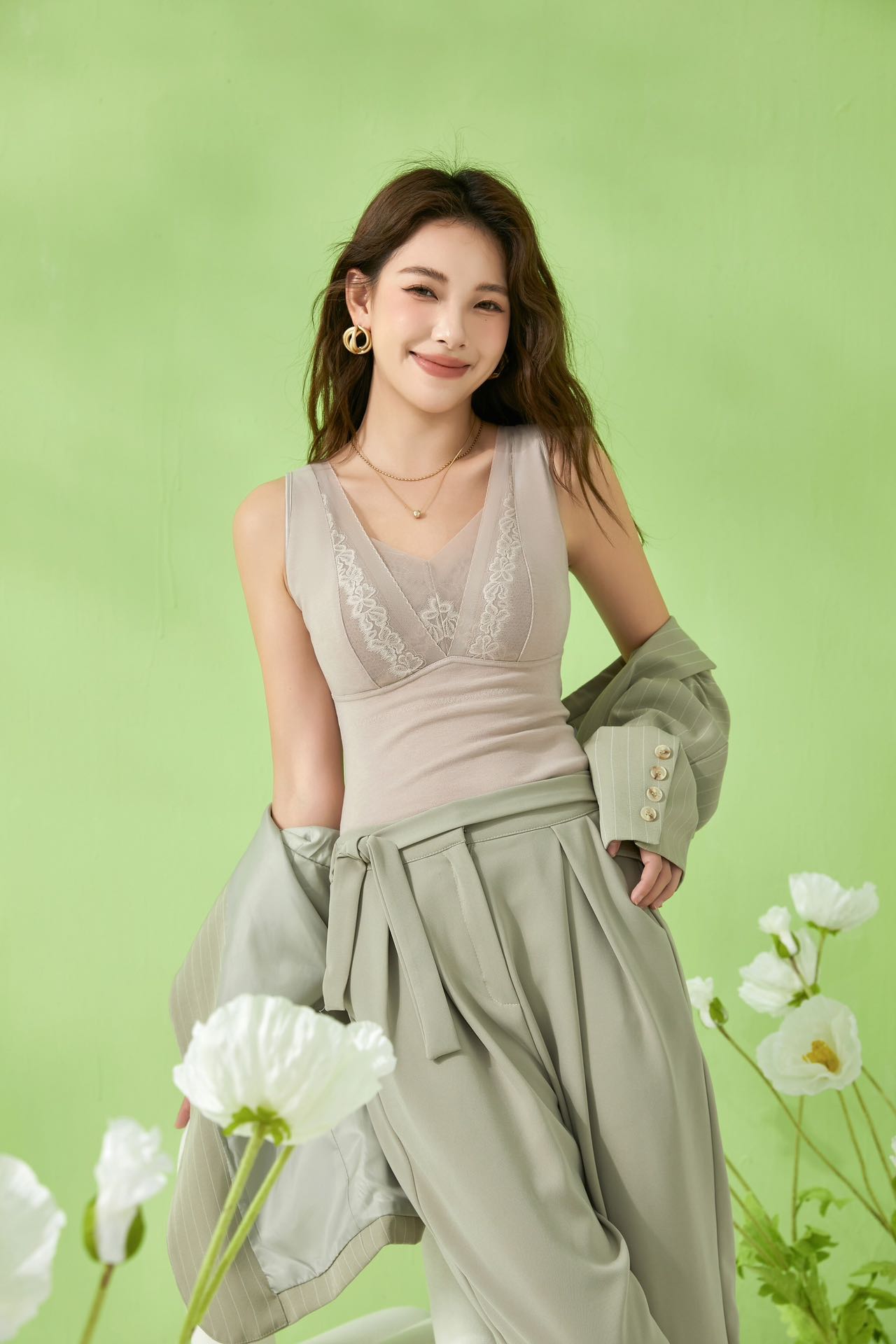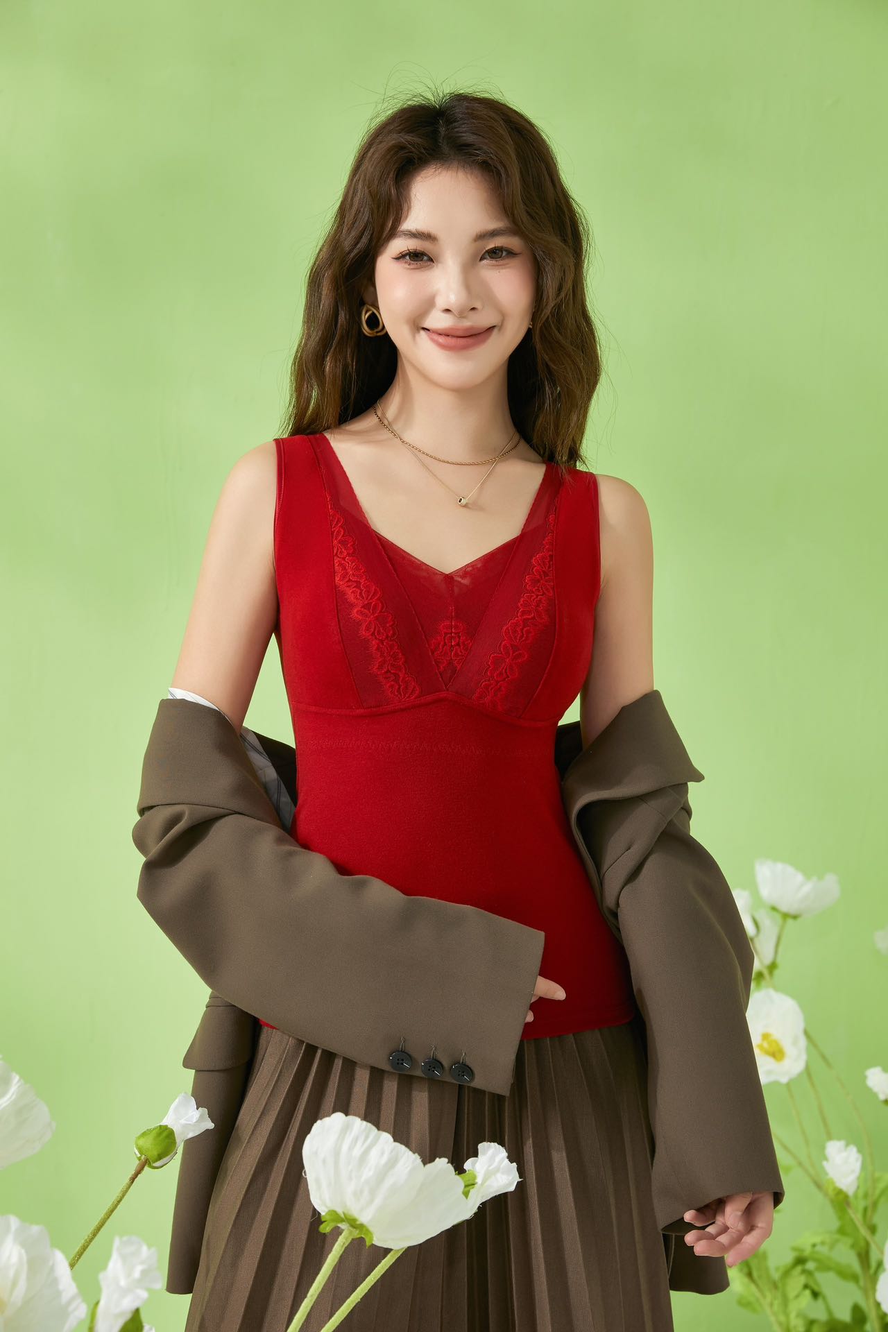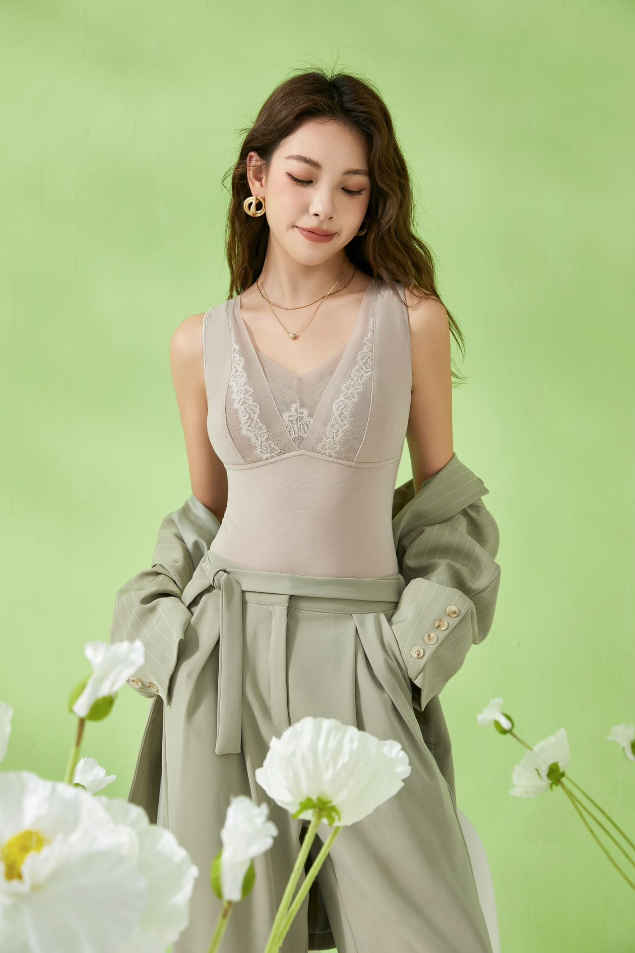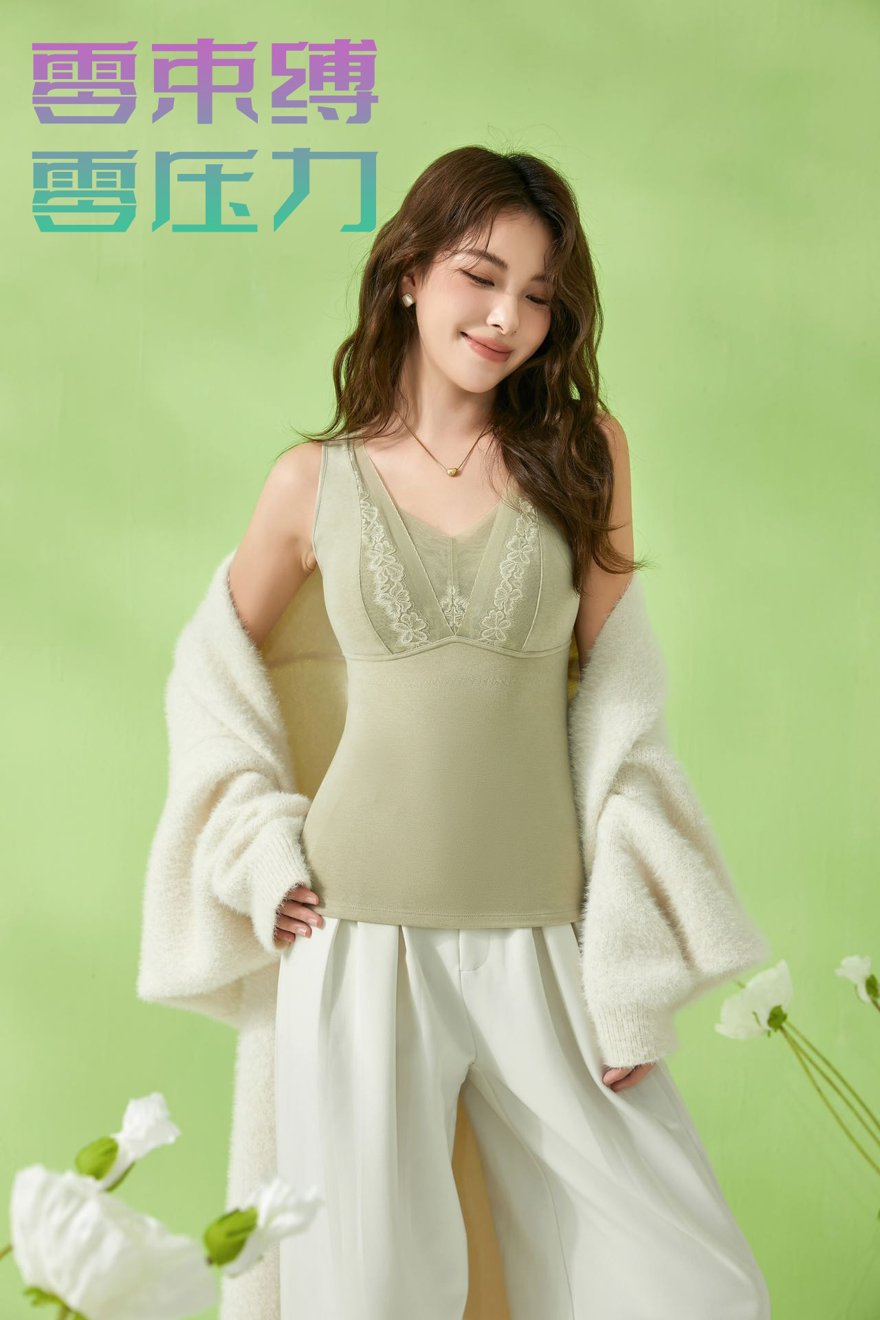 ALY-我的金桔-女士大蕾丝款文胸背心V领保暖8372【ZB】