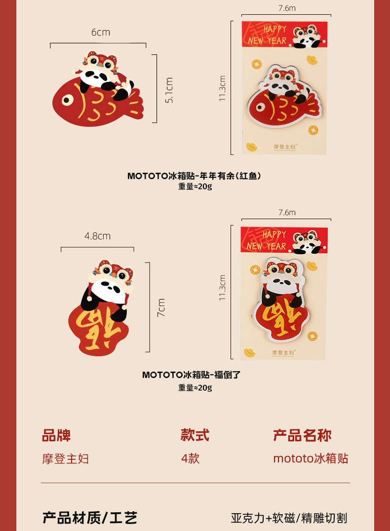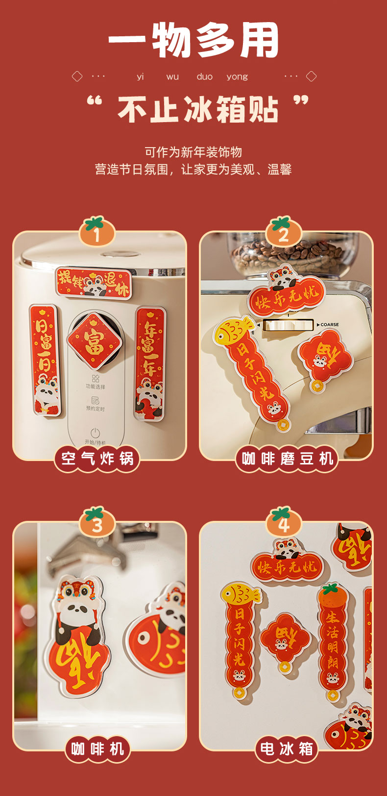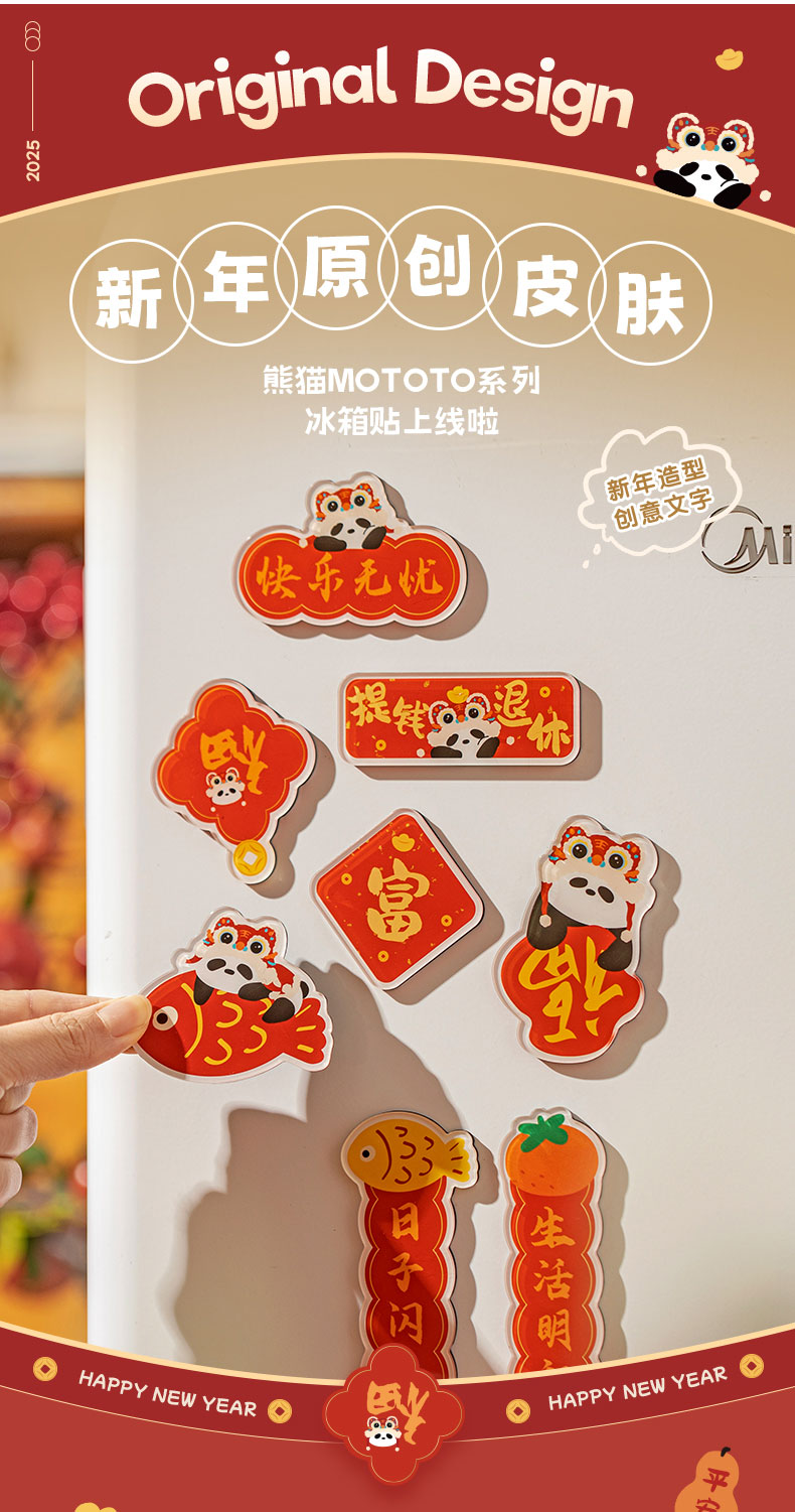 摩登主妇 mototo熊猫新年冰箱贴2025年新款蛇年磁吸春节创意磁力贴