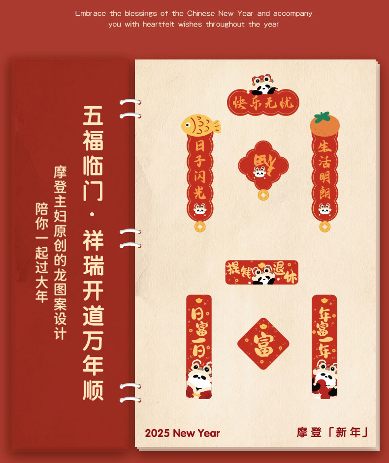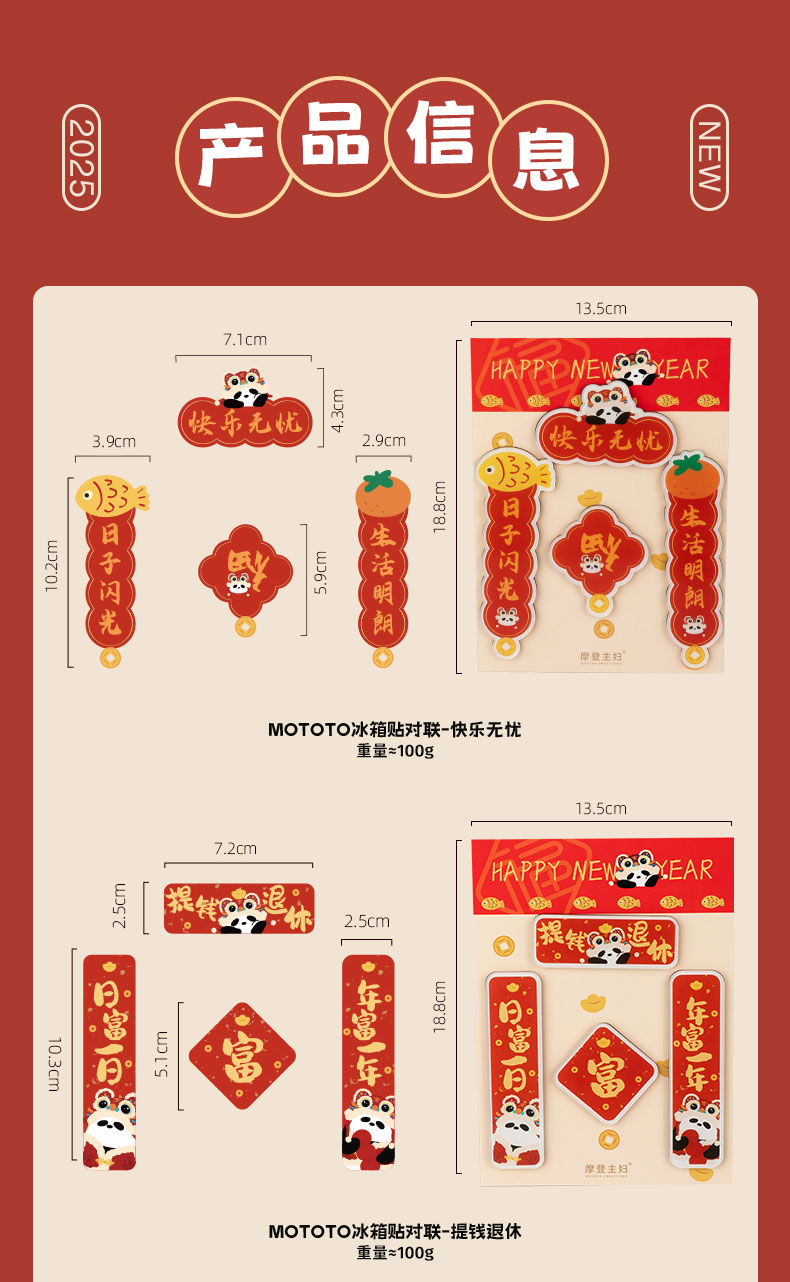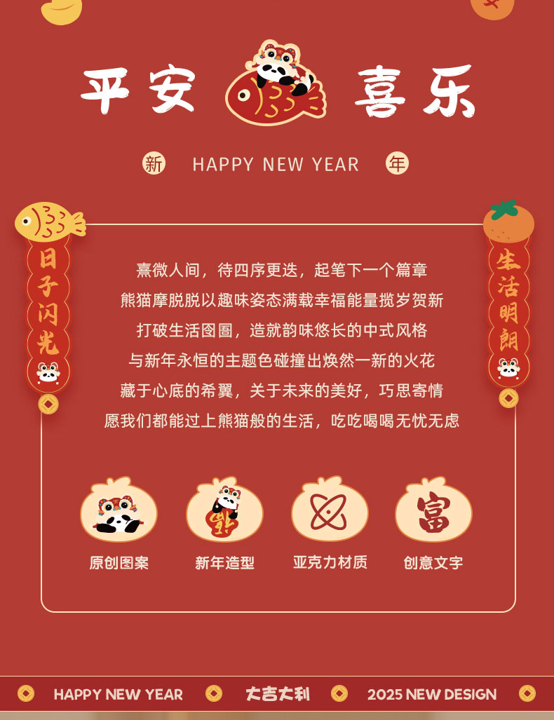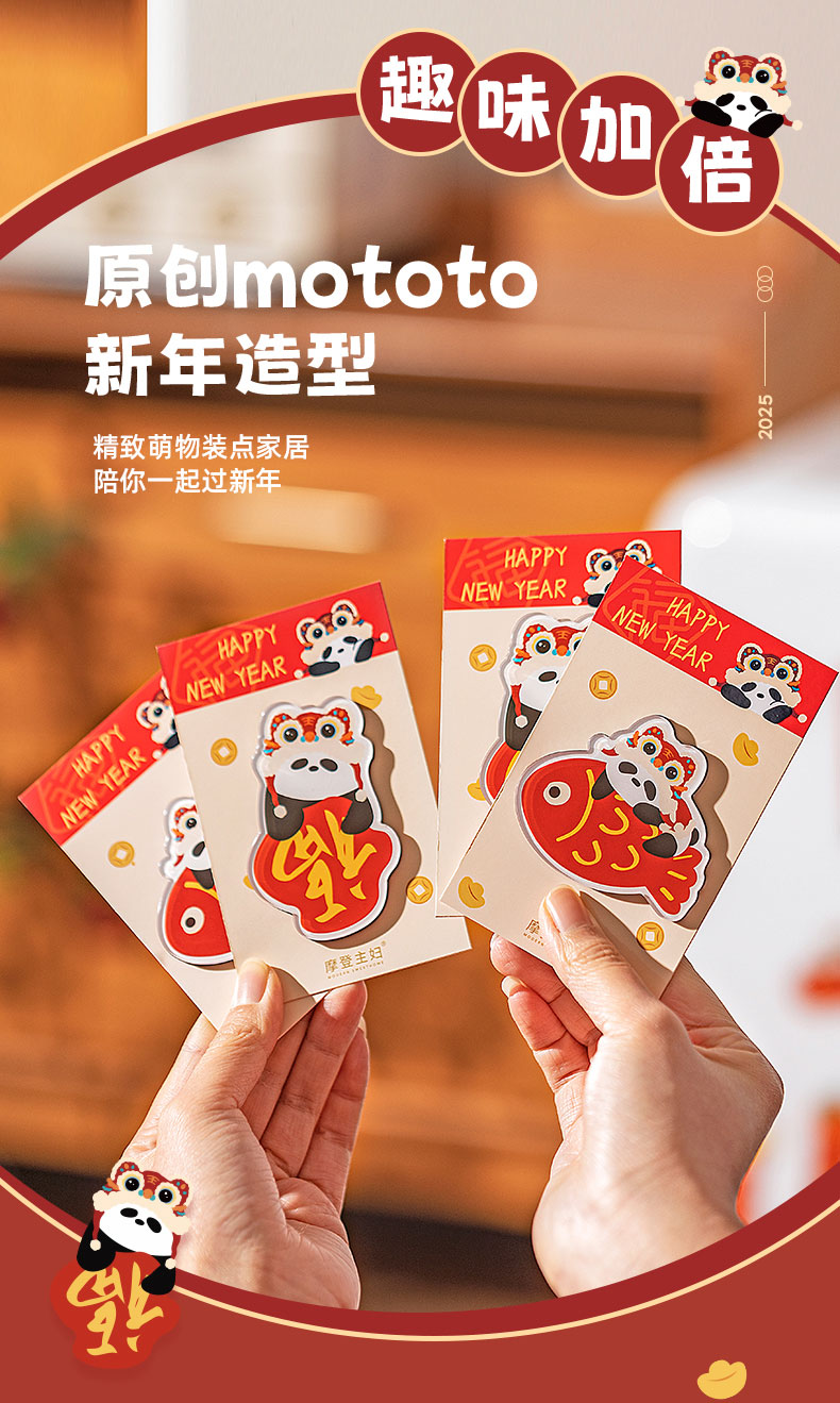 摩登主妇 mototo熊猫新年冰箱贴2025年新款蛇年磁吸春节创意磁力贴