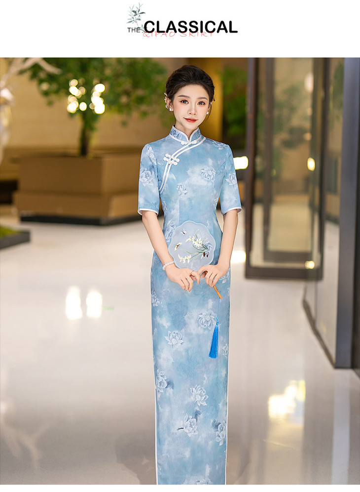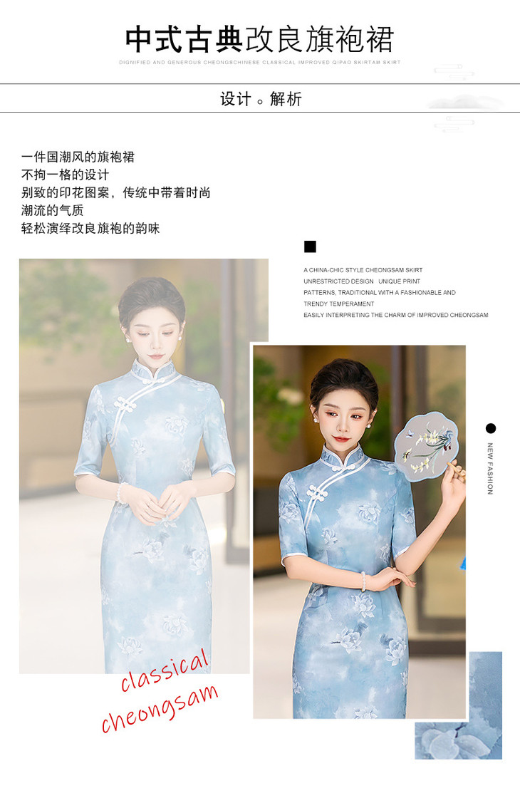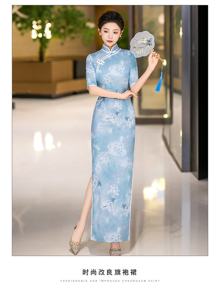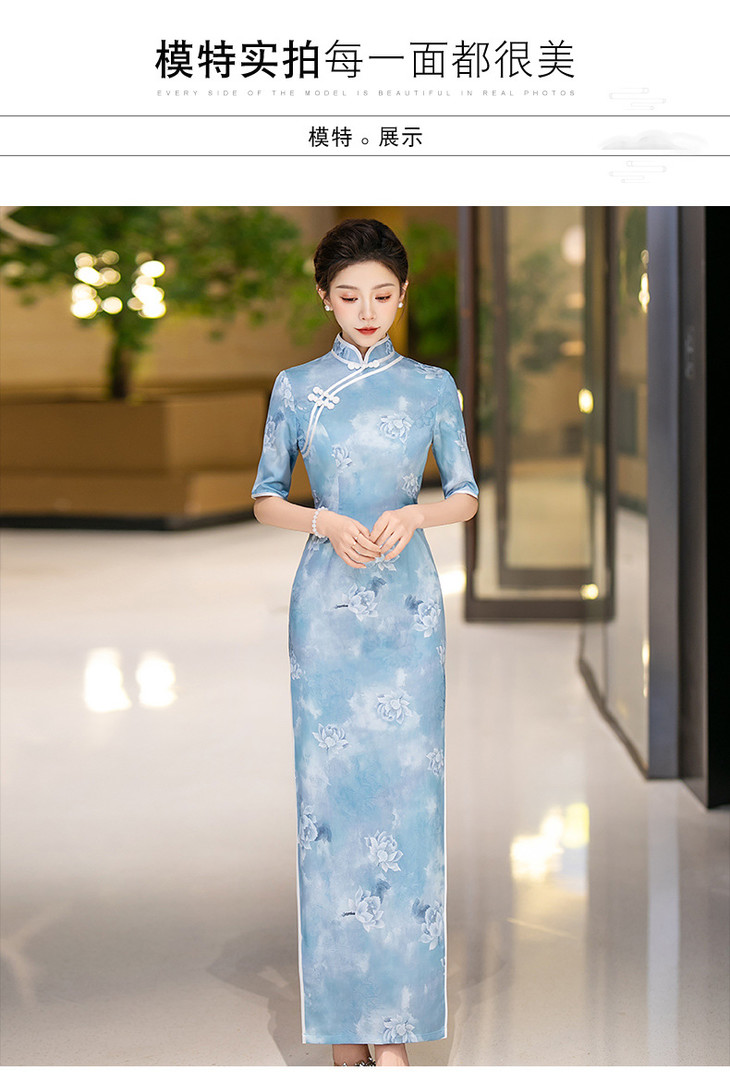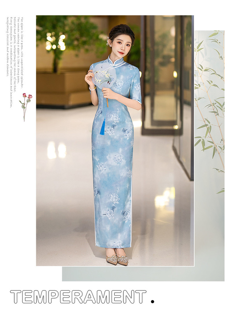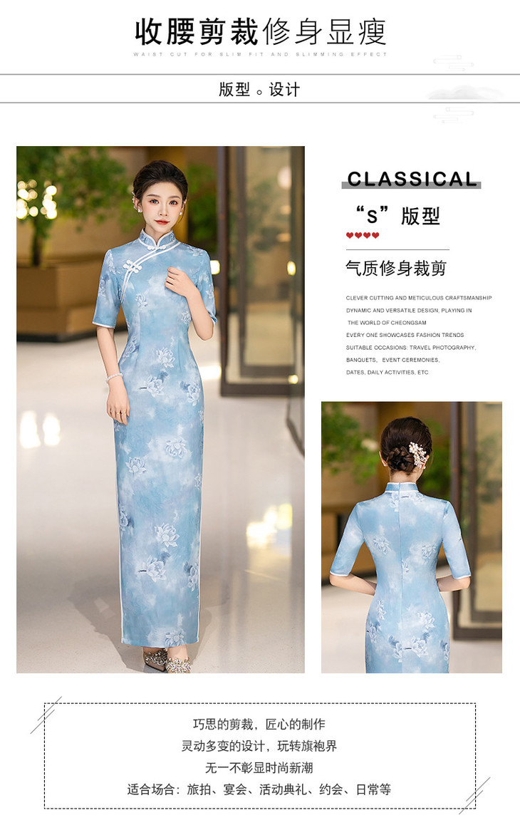 新款走秀长款显瘦连衣裙气质优雅高级感中式改良版旗袍QC184