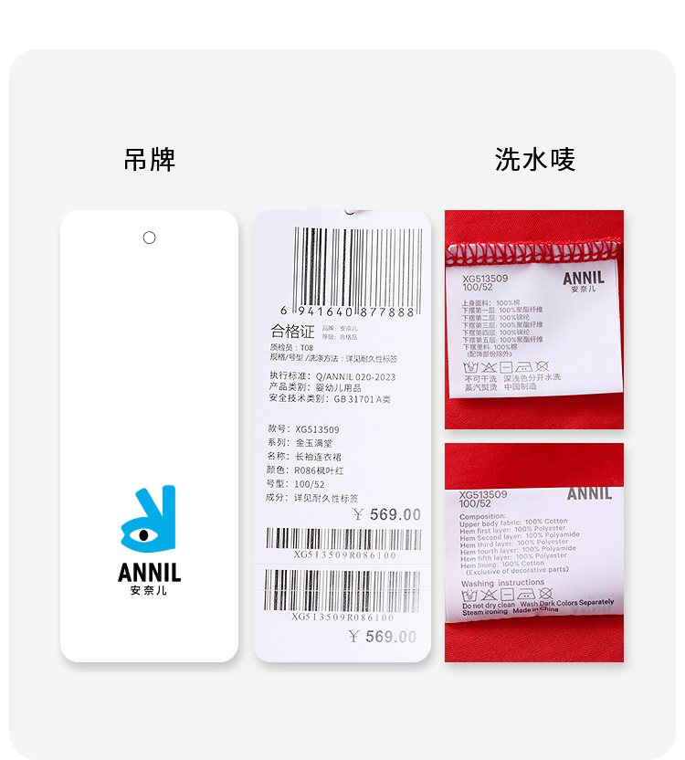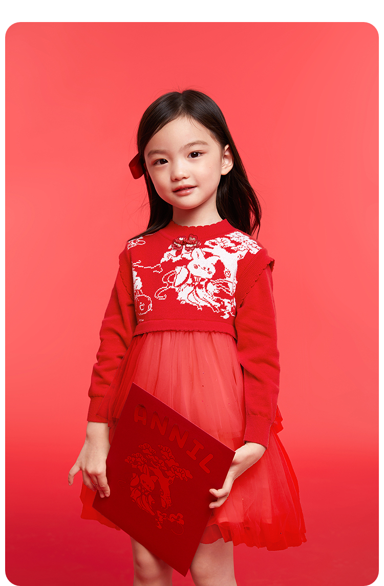 女童长袖连衣裙春季新款安奈儿童装实体店同款XG513509