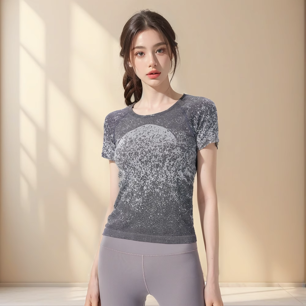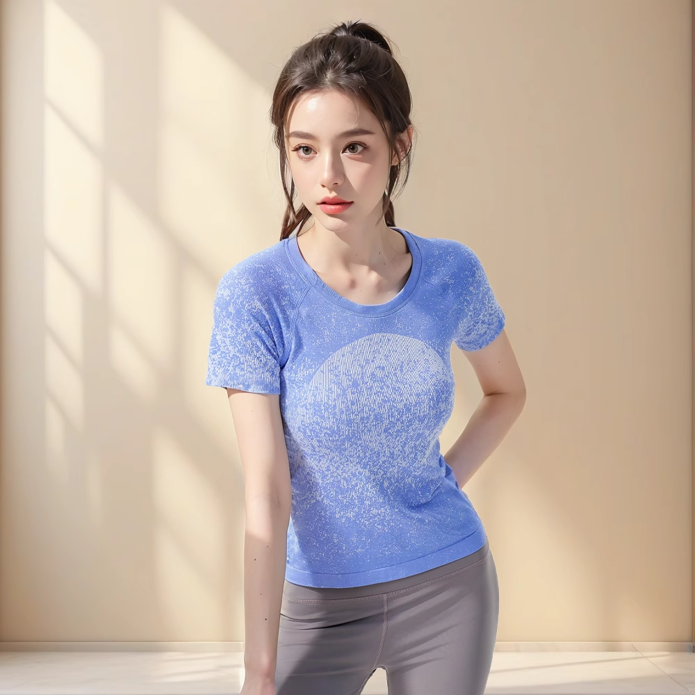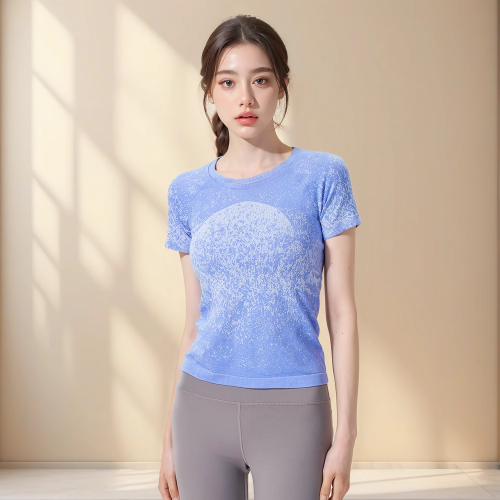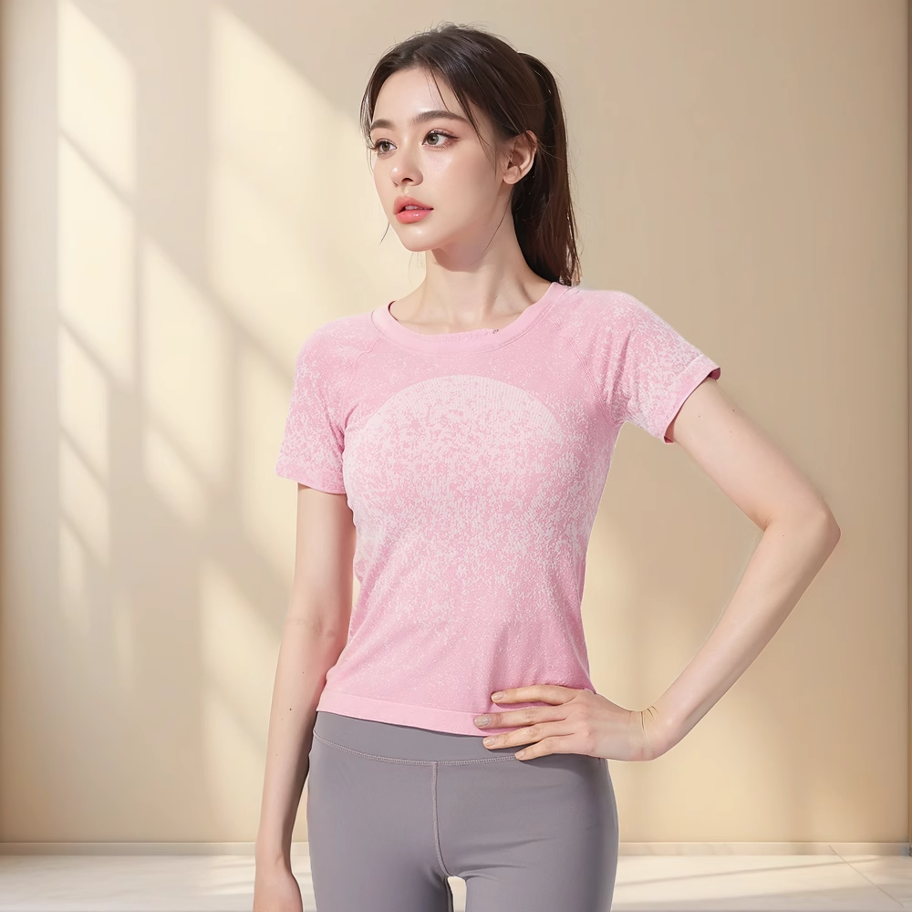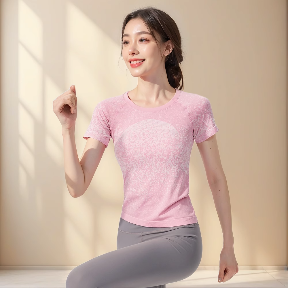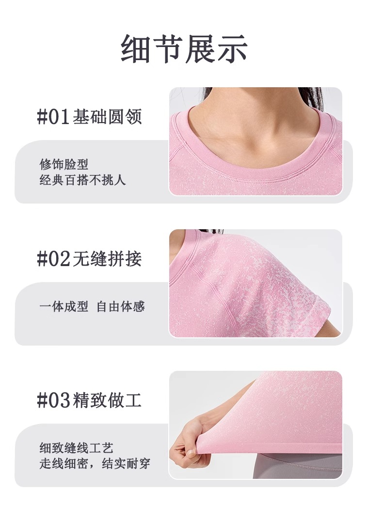 跃牌【美西西系列】无缝短袖T恤夏季圆领提花显瘦训练健身LULU瑜伽跑步运动上衣6209