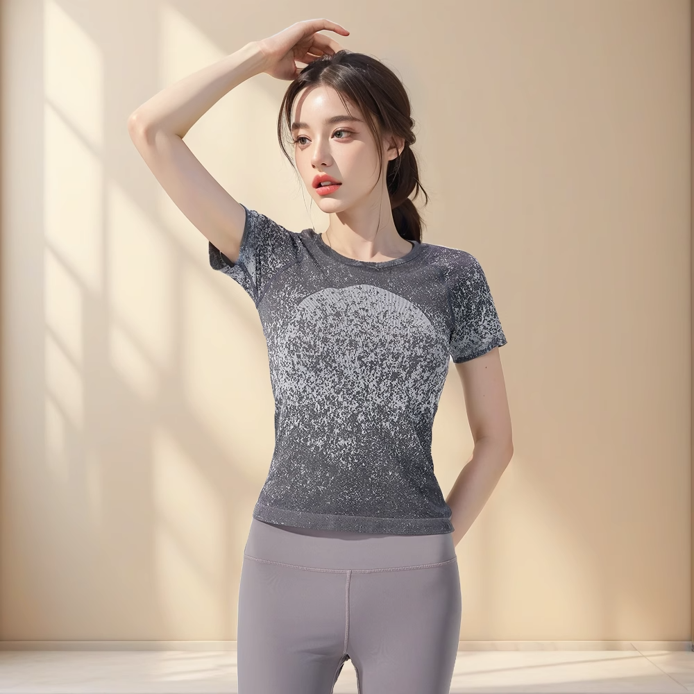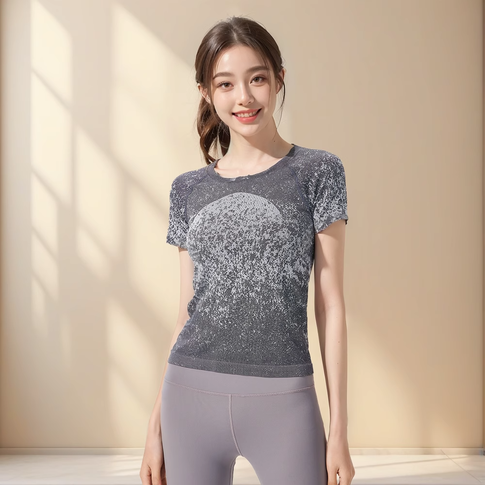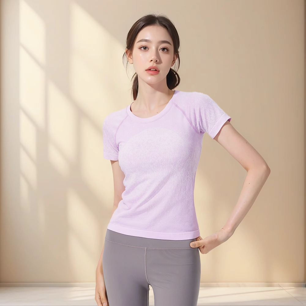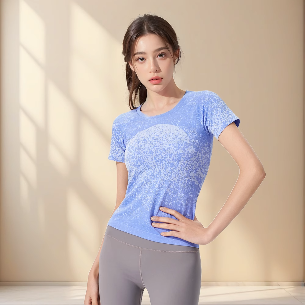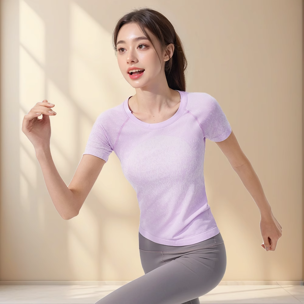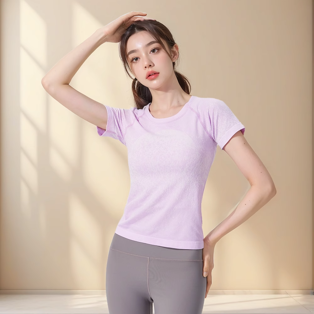 跃牌【美西西系列】无缝短袖T恤夏季圆领提花显瘦训练健身LULU瑜伽跑步运动上衣6209