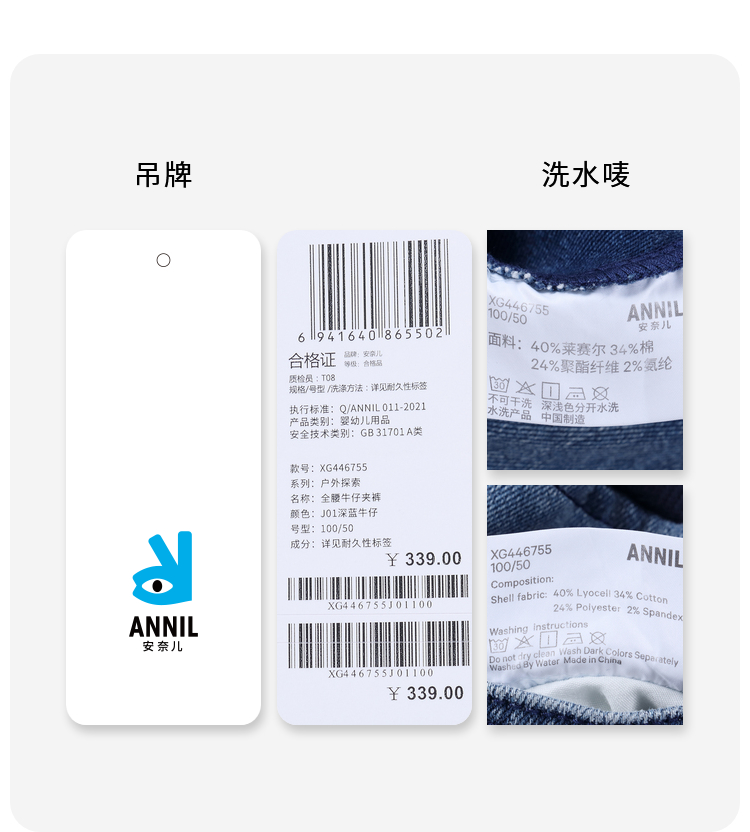 女童黑科技蓄热牛仔长裤冬季新款安奈儿童装实体店同款XG446755