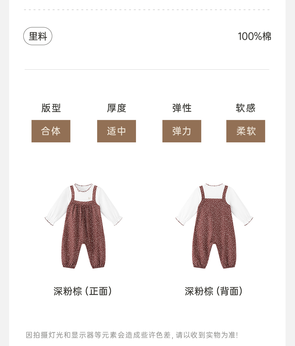 【商场同款】英氏婴儿衣服纯棉女童连身衣秋季长袖假两件新款