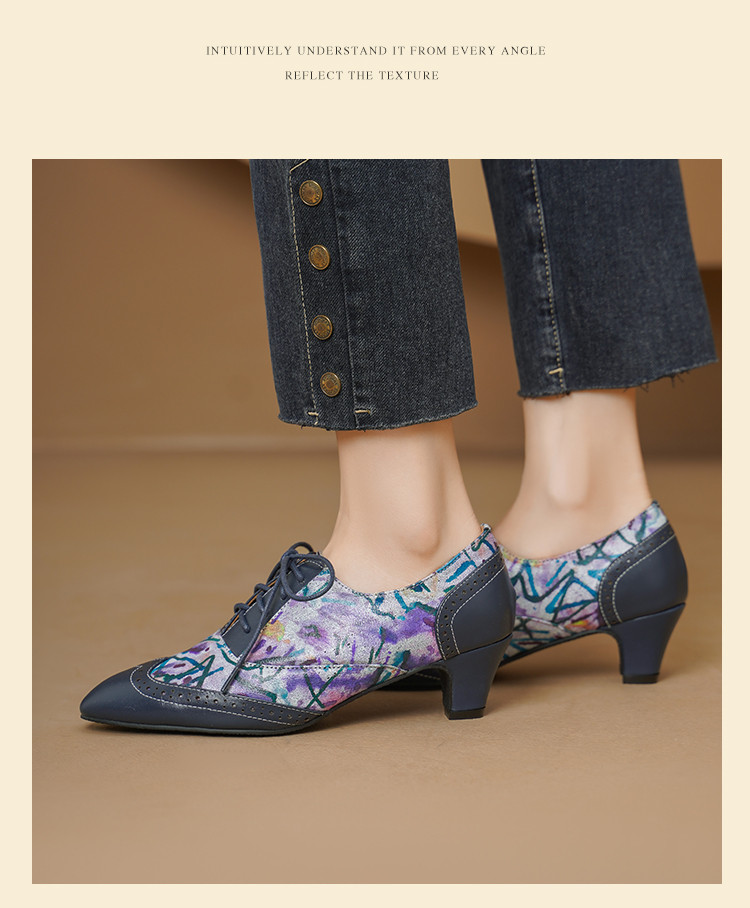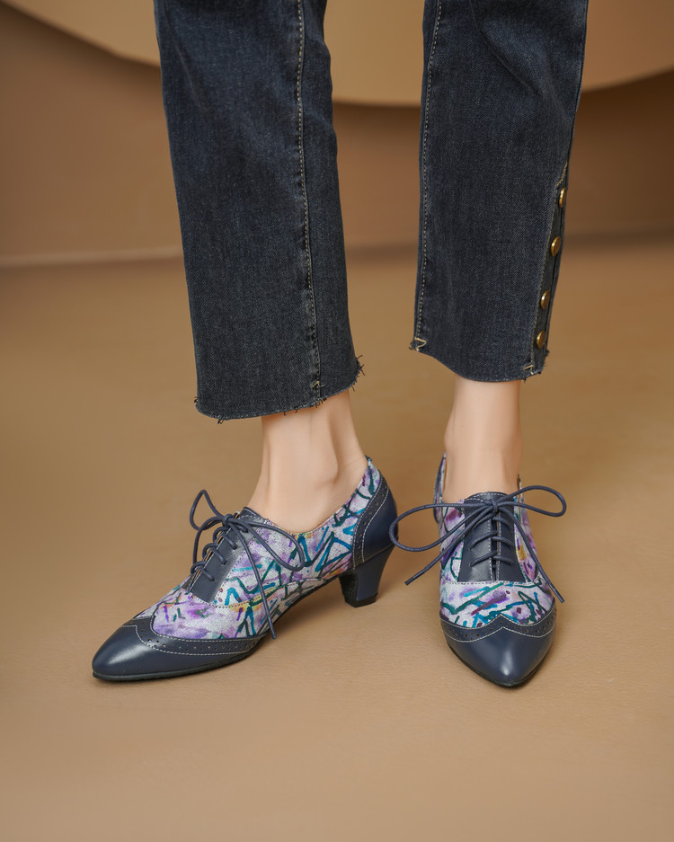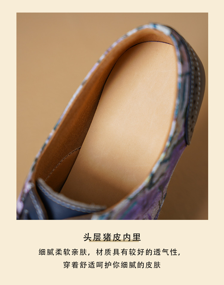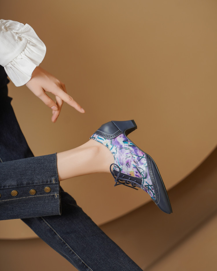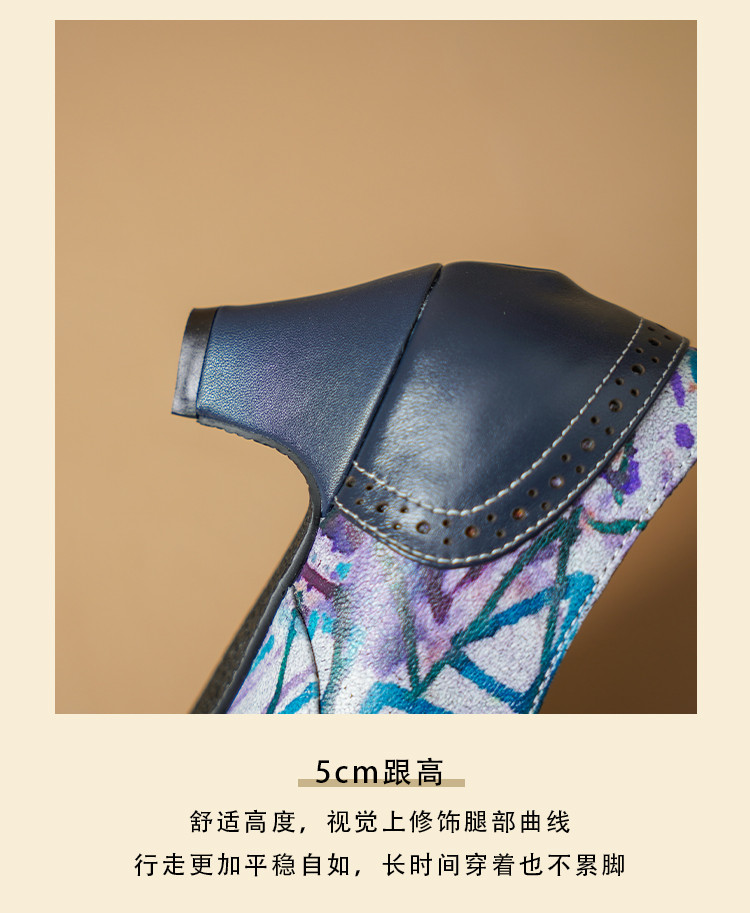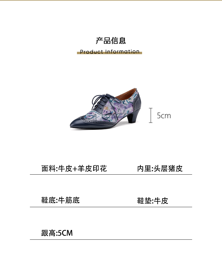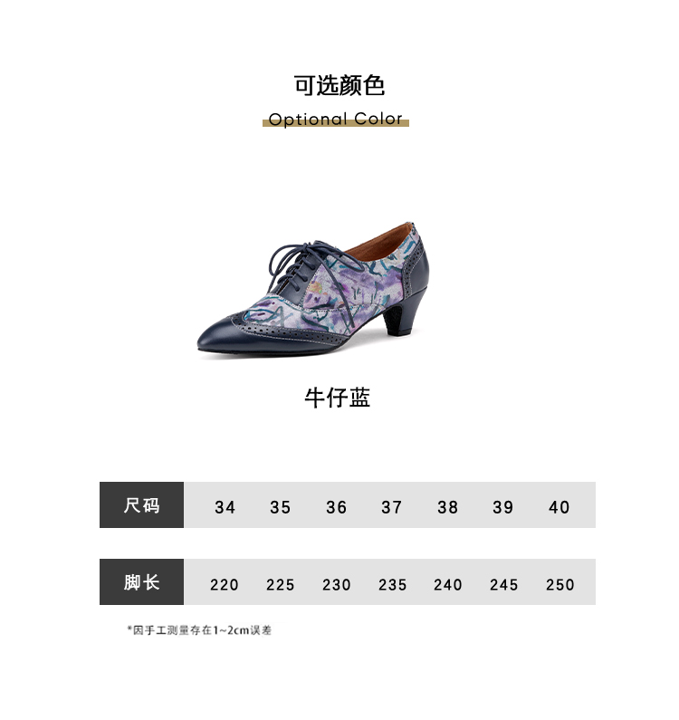 【货 号】2502【鞋面材质】牛皮+羊皮印花【内里材质】猪皮【鞋垫材质】牛皮【鞋底材质】牛筋底【跟 高】5cm【颜 色】牛仔蓝【尺 码】34-43(大小定制不退换)