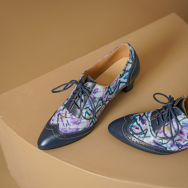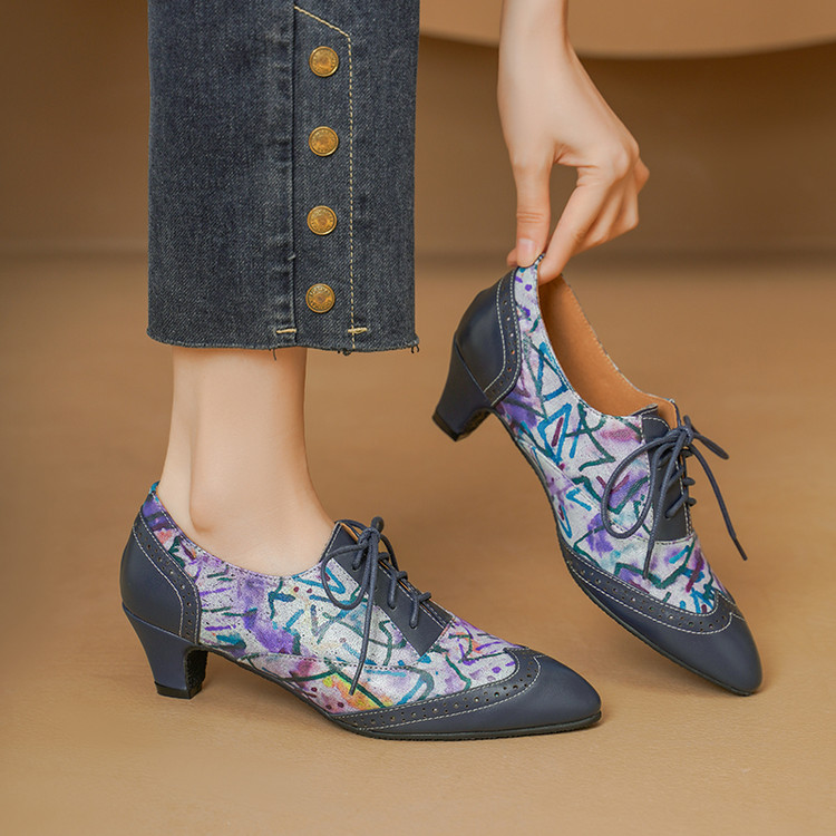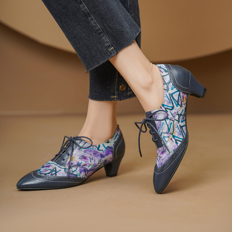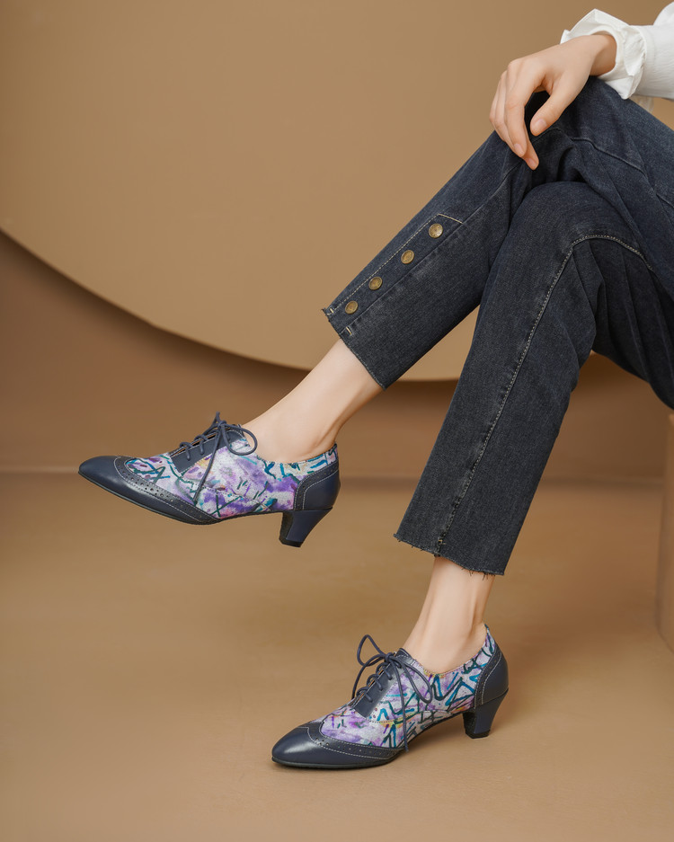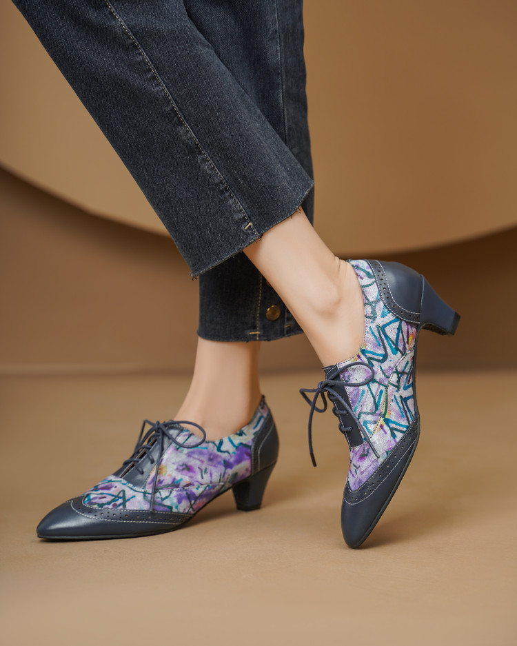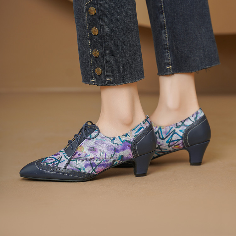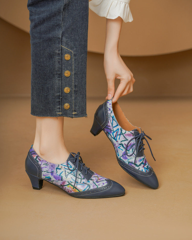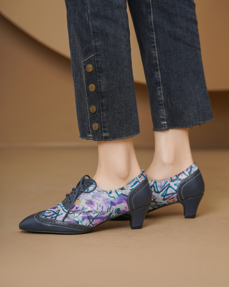 【货 号】2502【鞋面材质】牛皮+羊皮印花【内里材质】猪皮【鞋垫材质】牛皮【鞋底材质】牛筋底【跟 高】5cm【颜 色】牛仔蓝【尺 码】34-43(大小定制不退换)