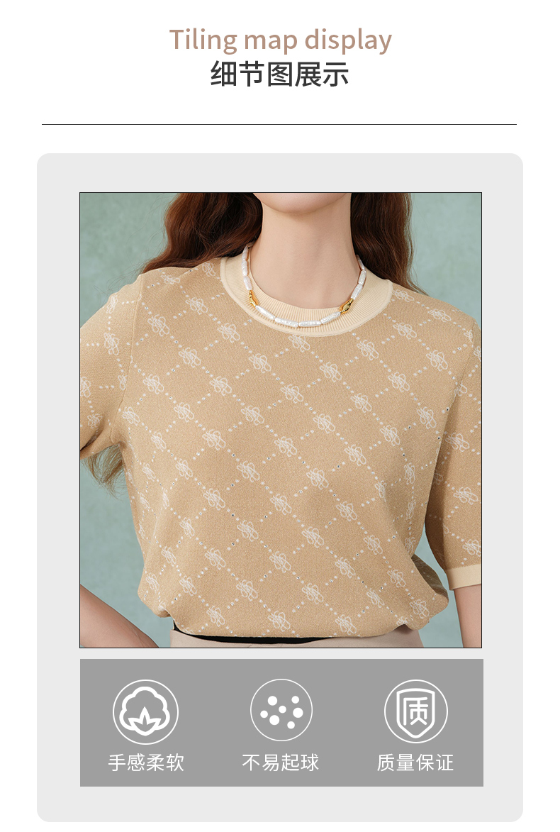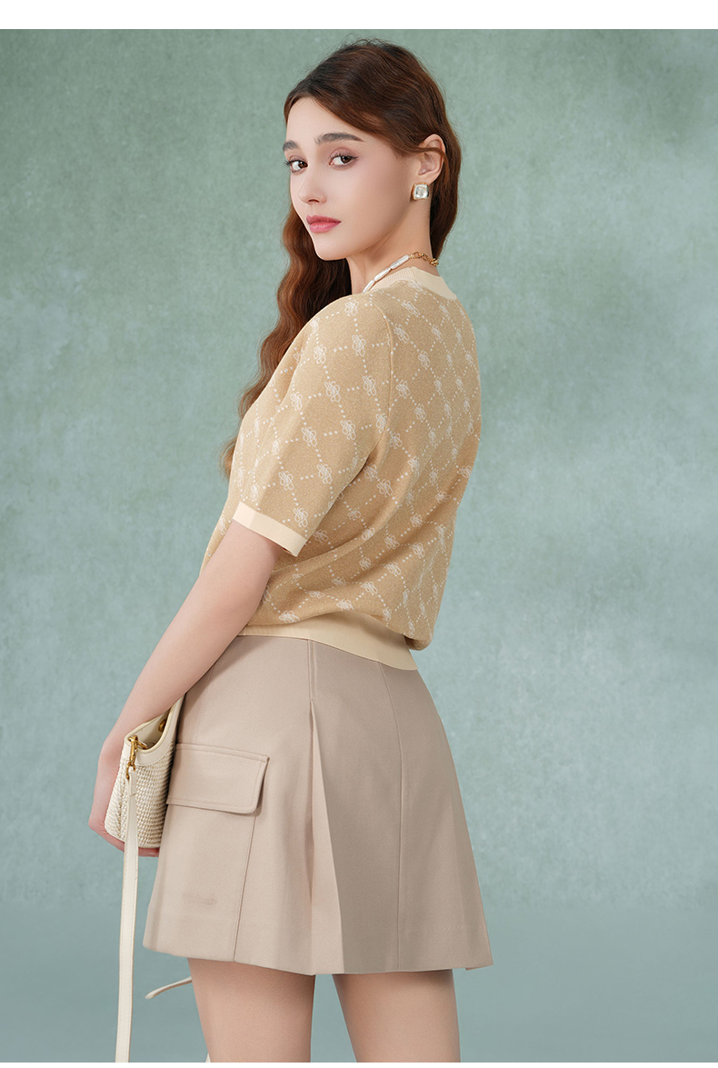 乔万尼新品针织短袖上衣时尚设计感圆领EM2M895