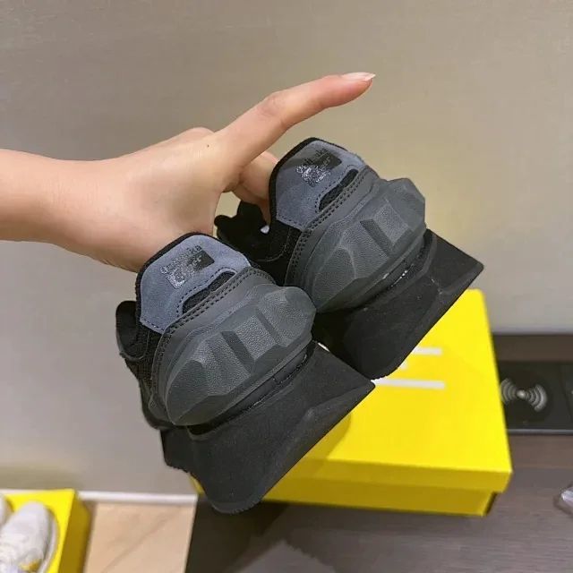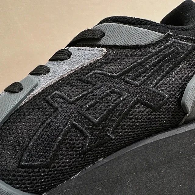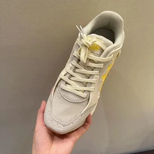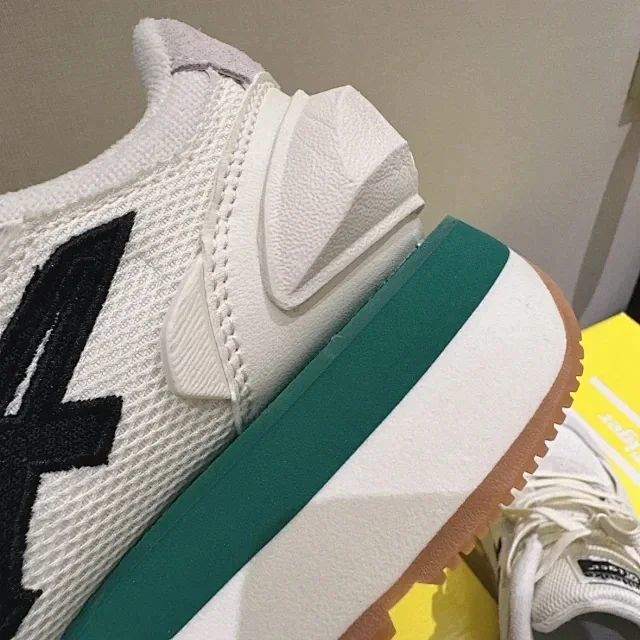 灵感来自上世纪80年代的跑鞋,融合经典与现代风格,鞋后跟采用独特大胆的凹凸设计,多种材料鞋面增添质感层次。