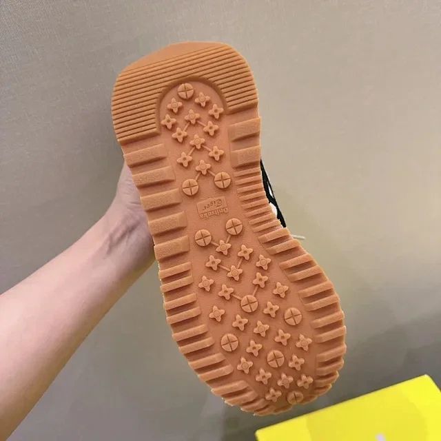 材质真皮翻毛皮,搭配大孔的针织,鞋底超级防滑!