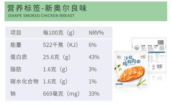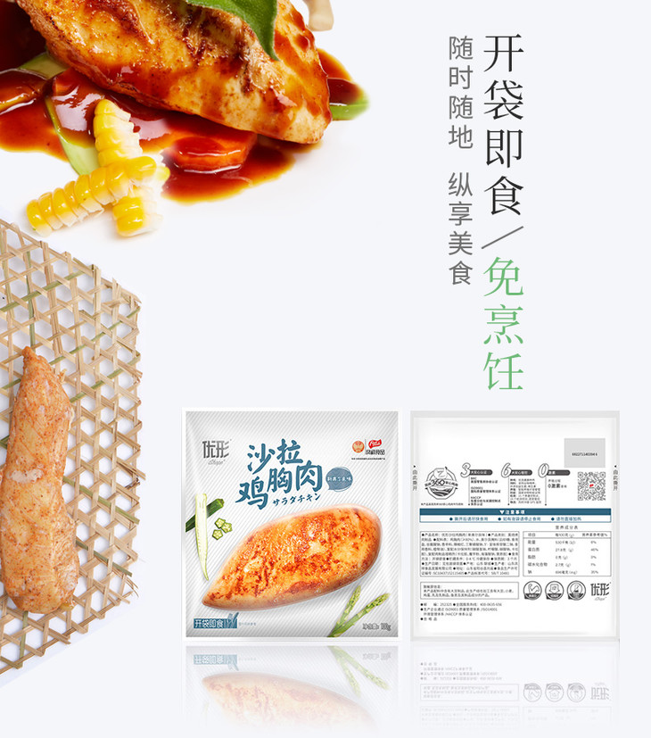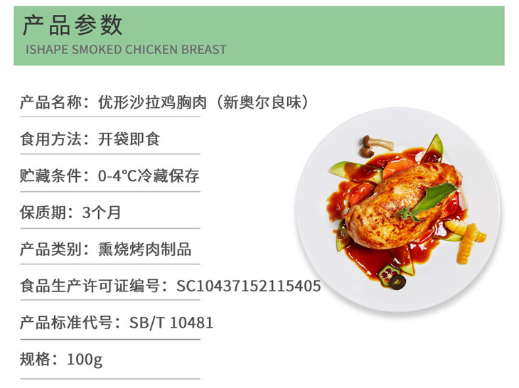 【3.4视频号】100g优形沙拉鸡胸肉(新奥尔良味/烧烤/海盐味) 高蛋低脂健身即食代餐鸡胸肉