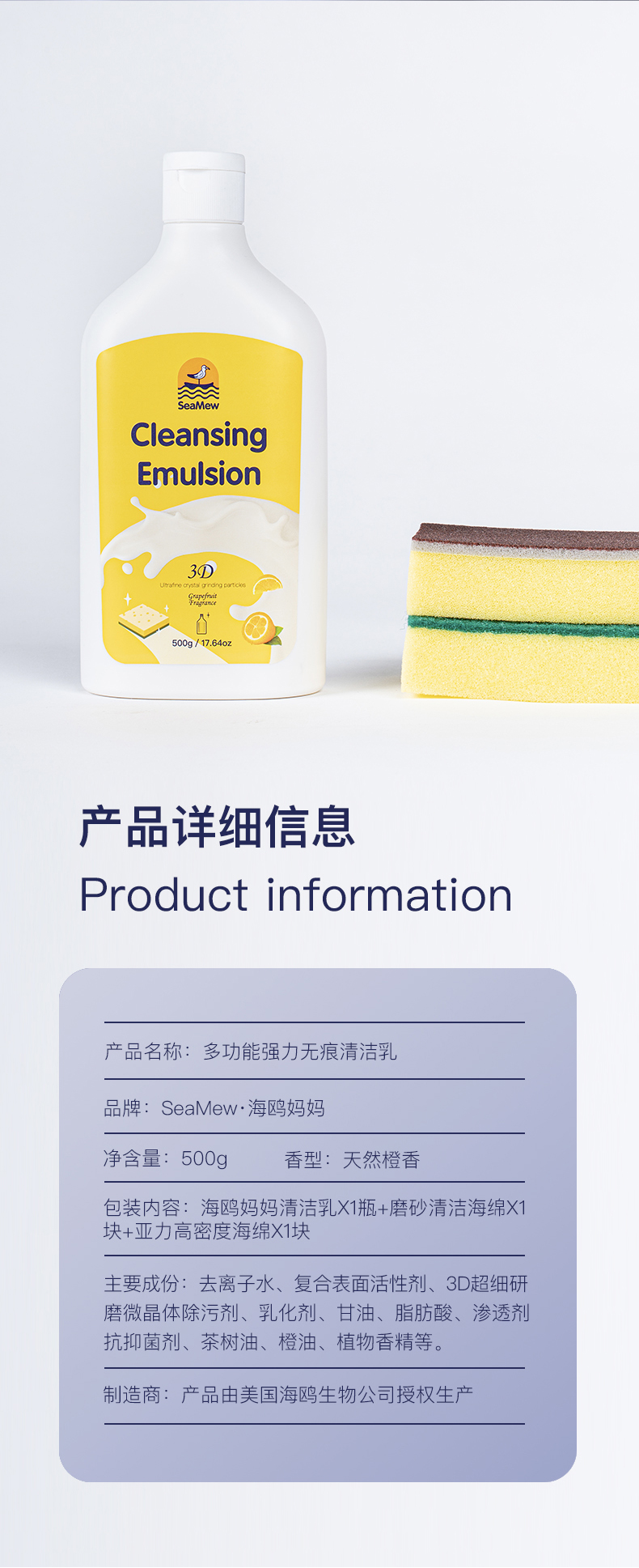 【解决95%的清洁难题】SeaMew海鸥妈妈多功能无痕清洁乳500g易冲洗无残留清洁保养二合一