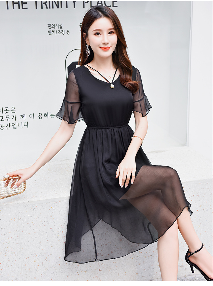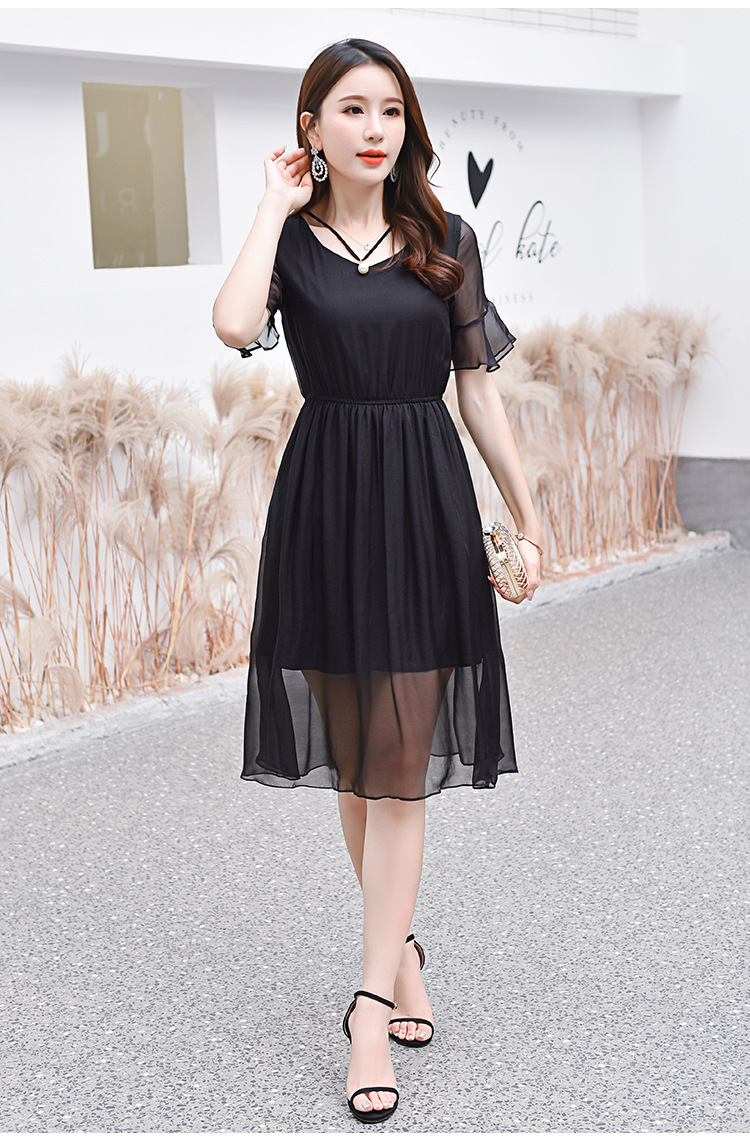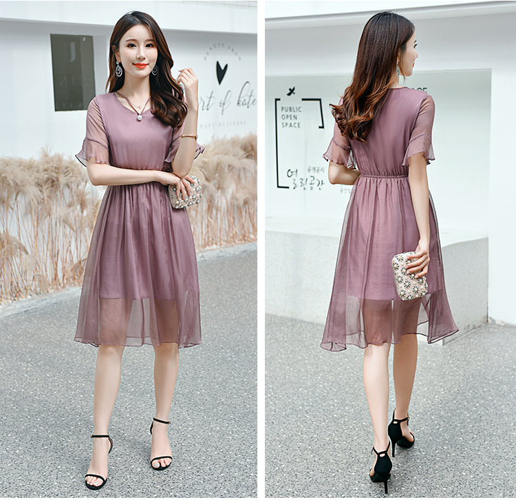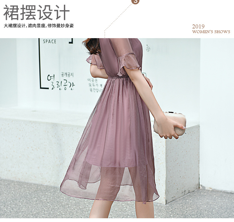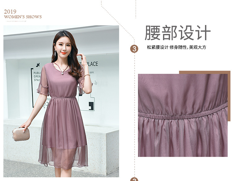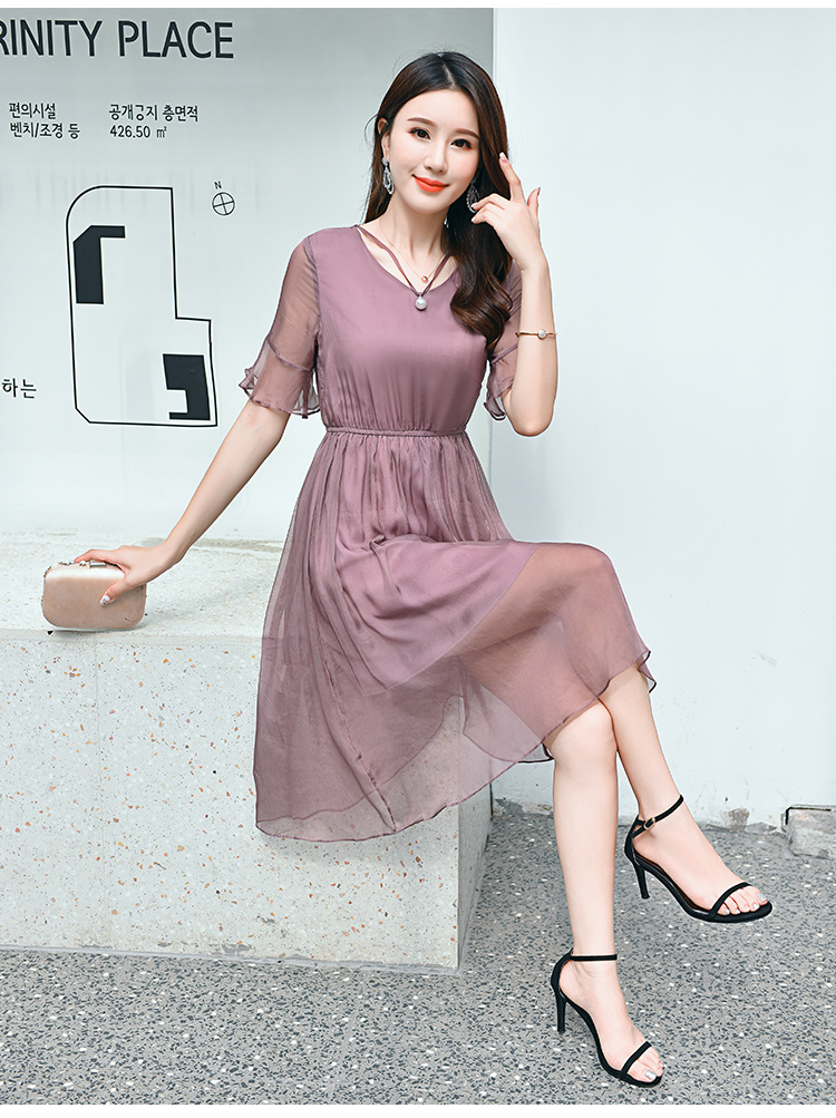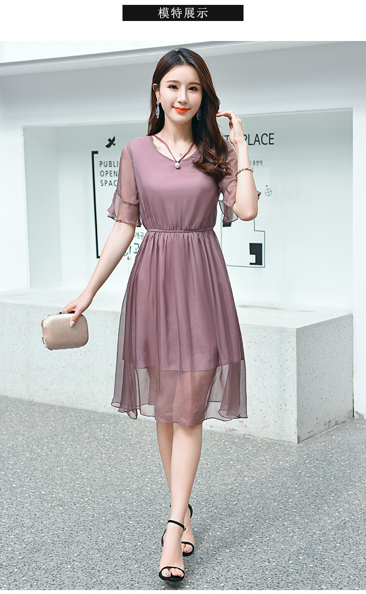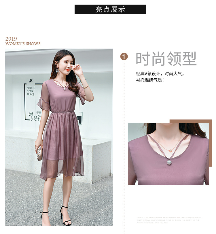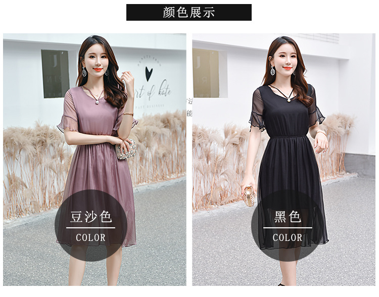 上海旗袍厂RJ-8809真丝连衣裙女中长款2021夏装时尚新款修身显瘦韩版气质桑蚕丝长裙