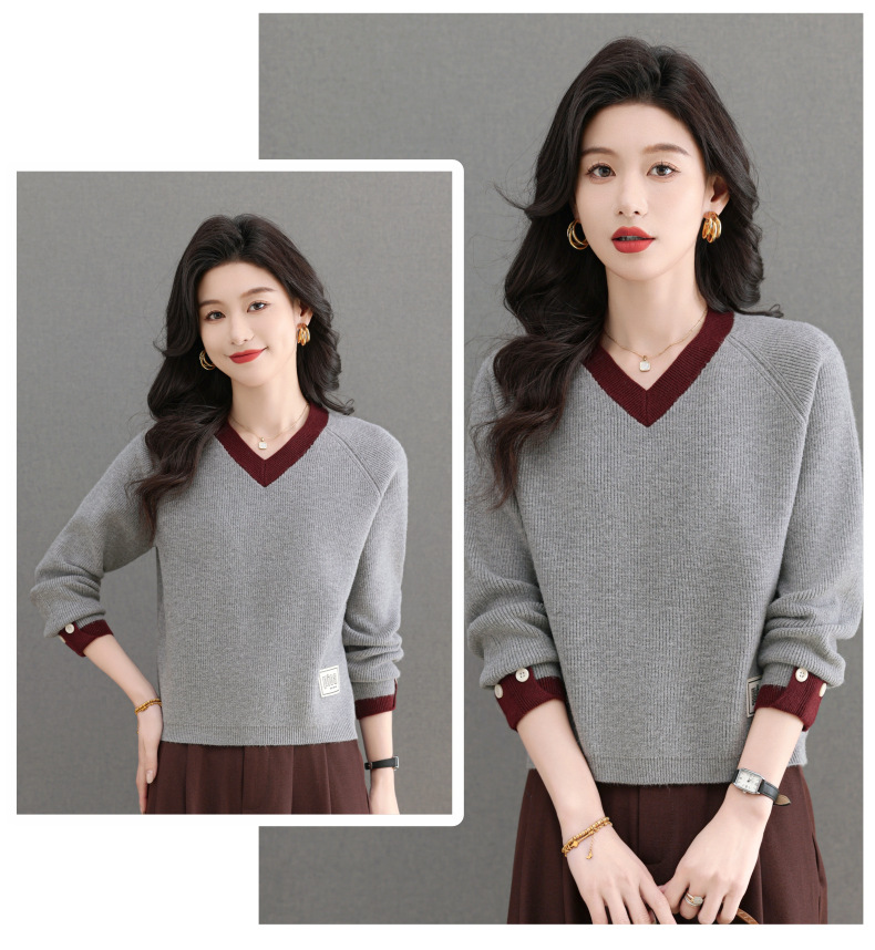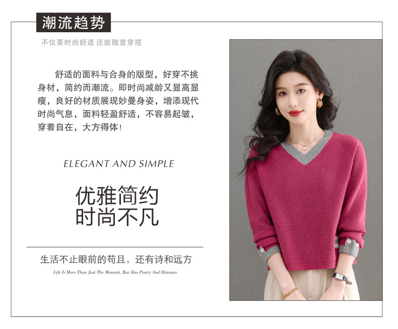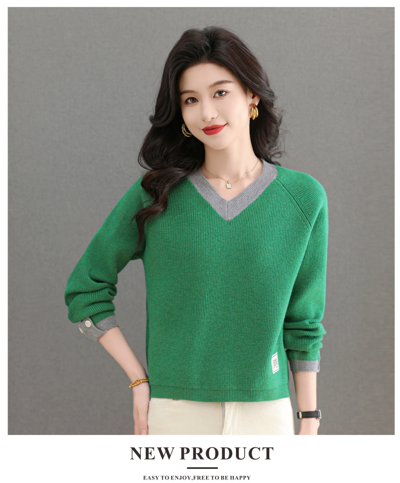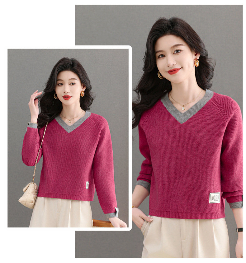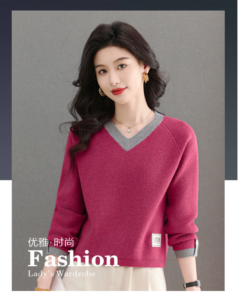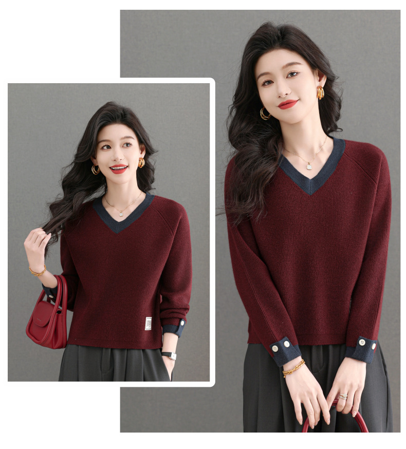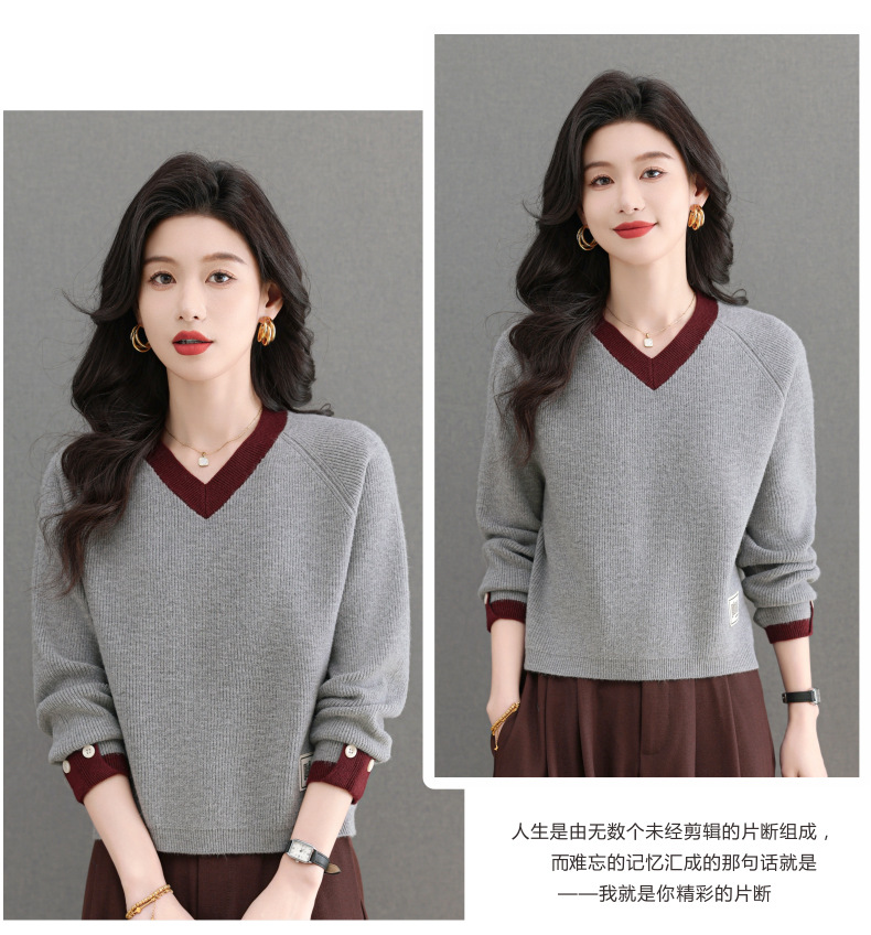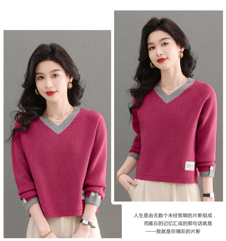 CC-103-A988V领短款毛衣女士2025春秋季新款小个子洋气拼色针织打底衫上衣服