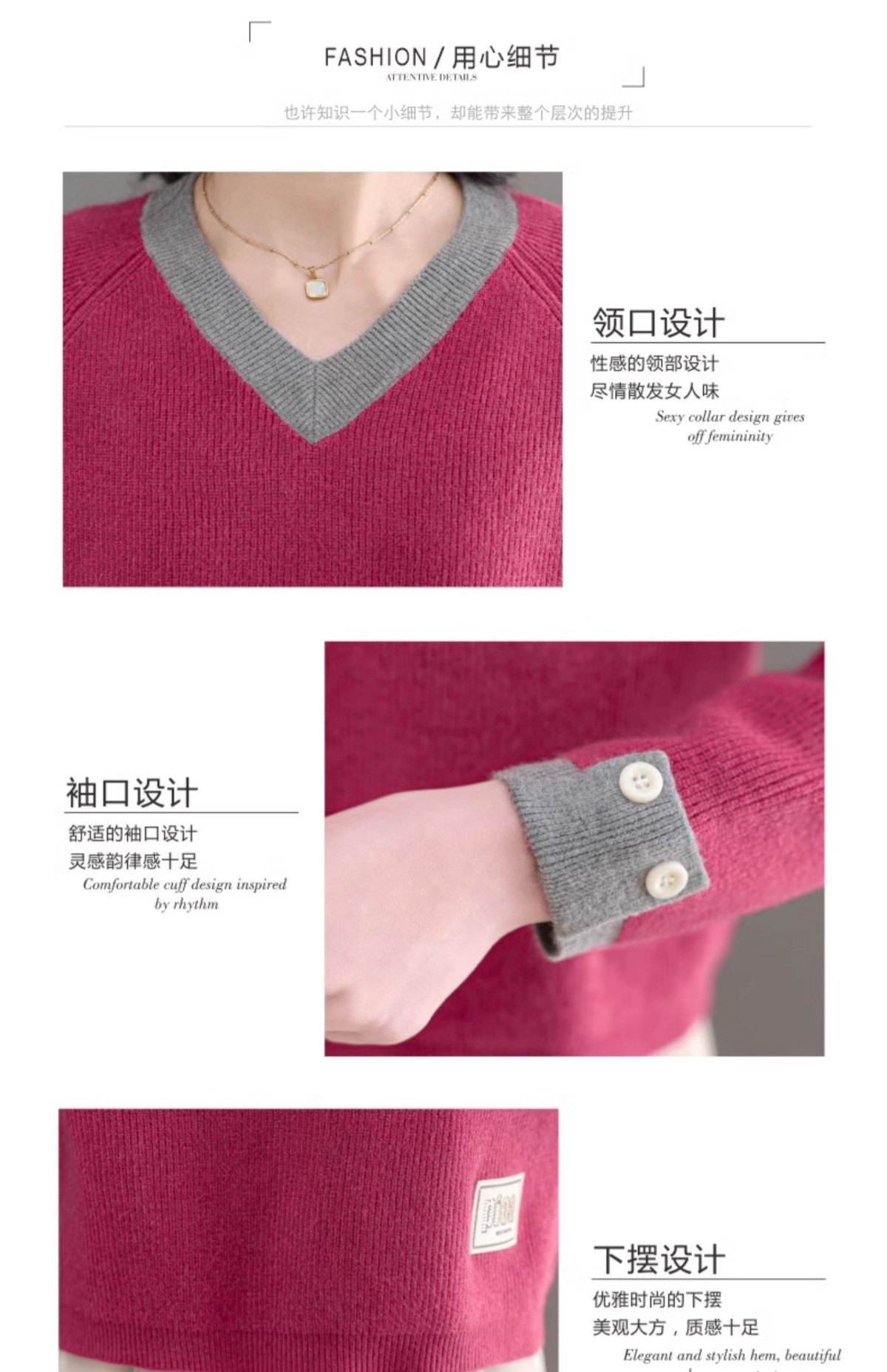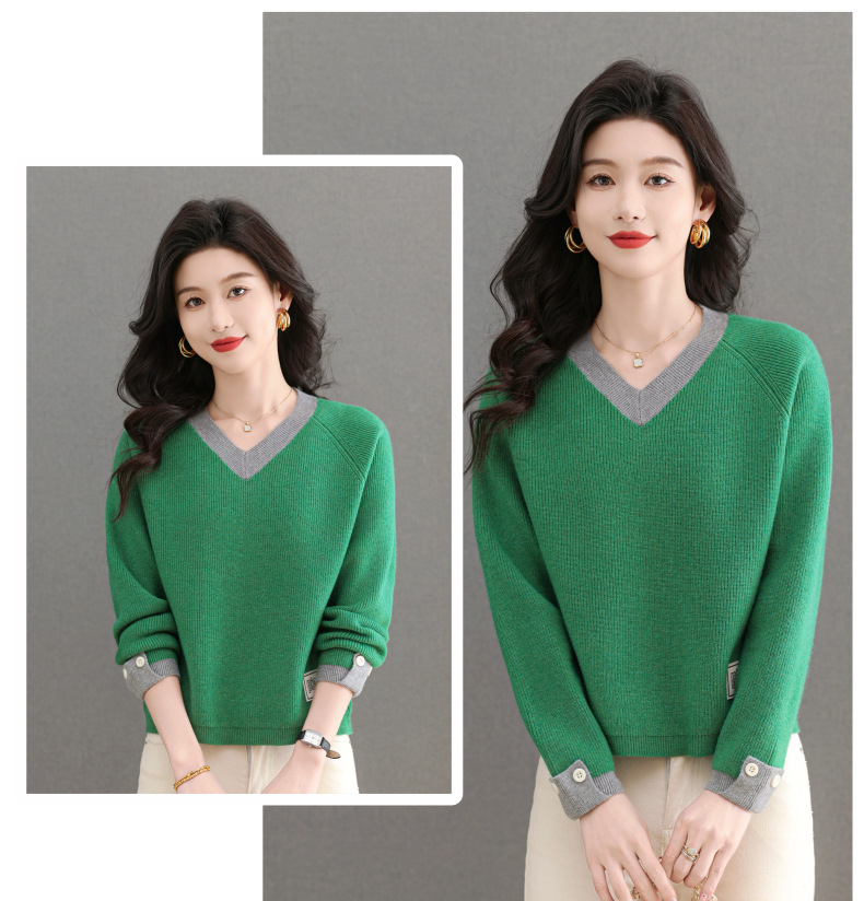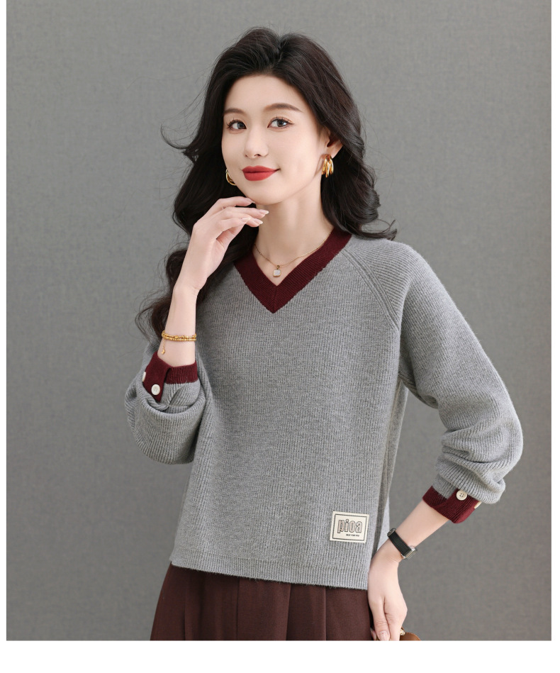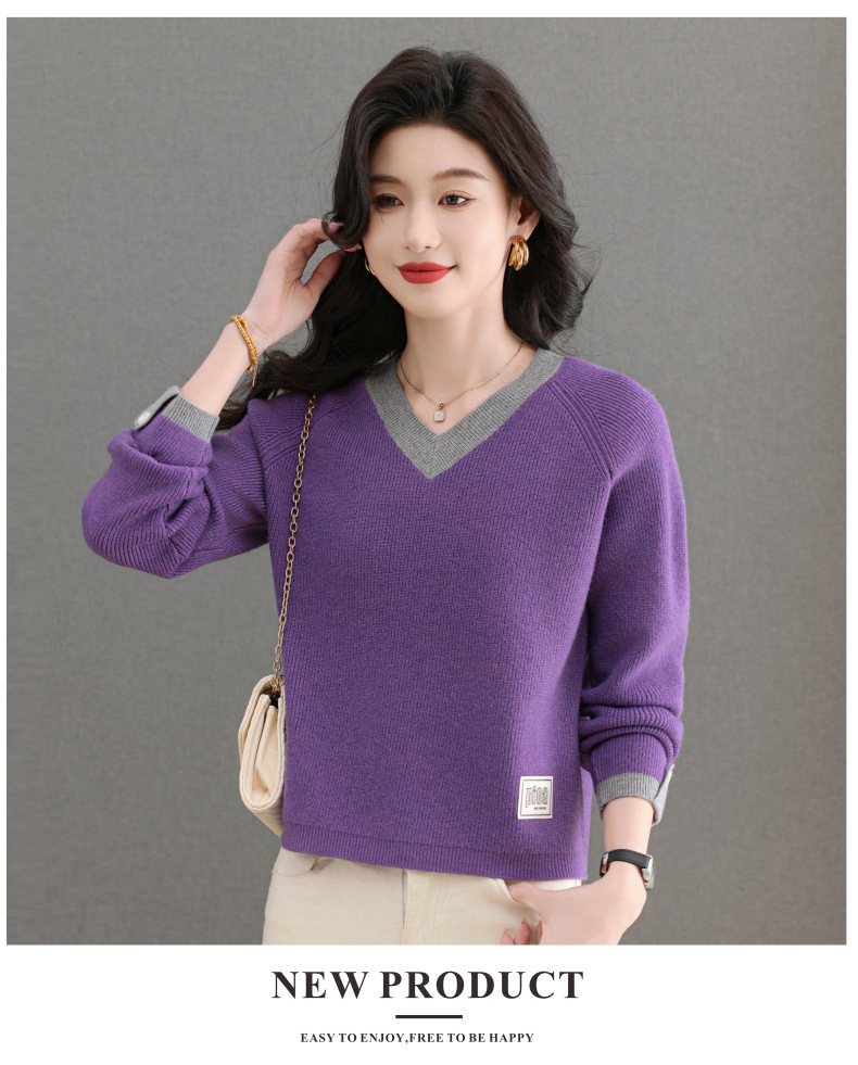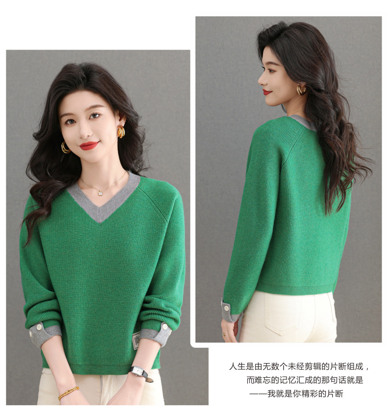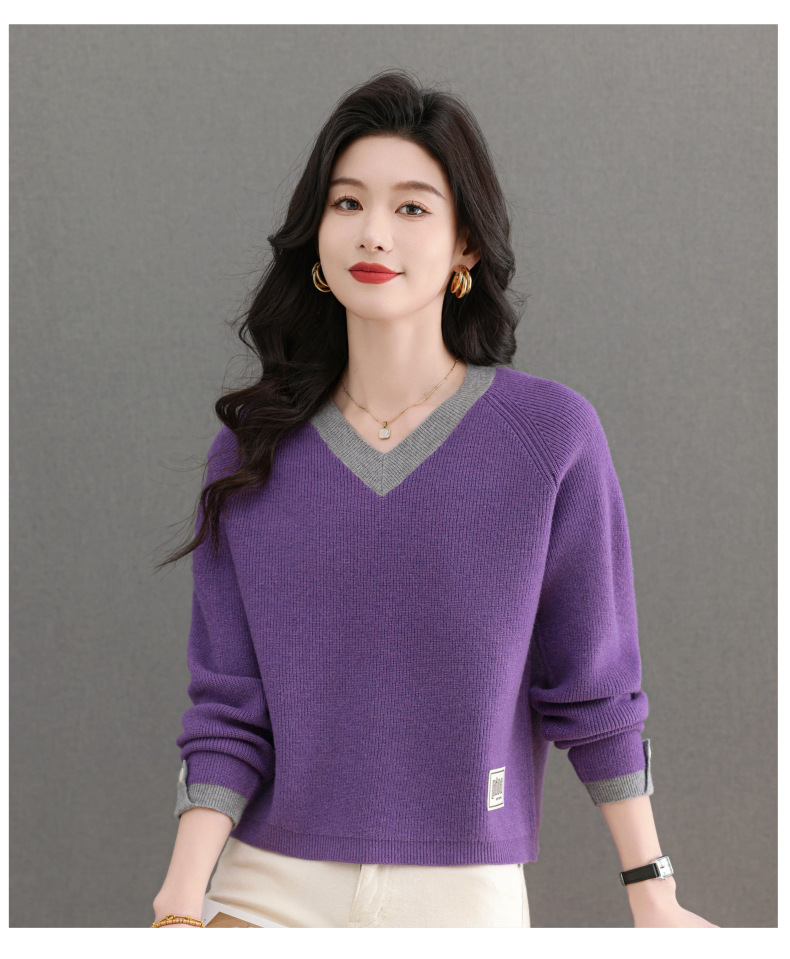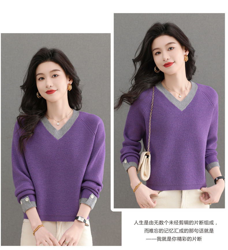 CC-103-A988V领短款毛衣女士2025春秋季新款小个子洋气拼色针织打底衫上衣服