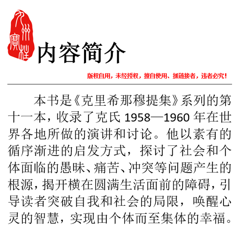 认识你的心 克里希那穆提 简体精装 克氏代表性著作 收录1958—1960年演讲讨论 冥想书籍 心理学哲学书