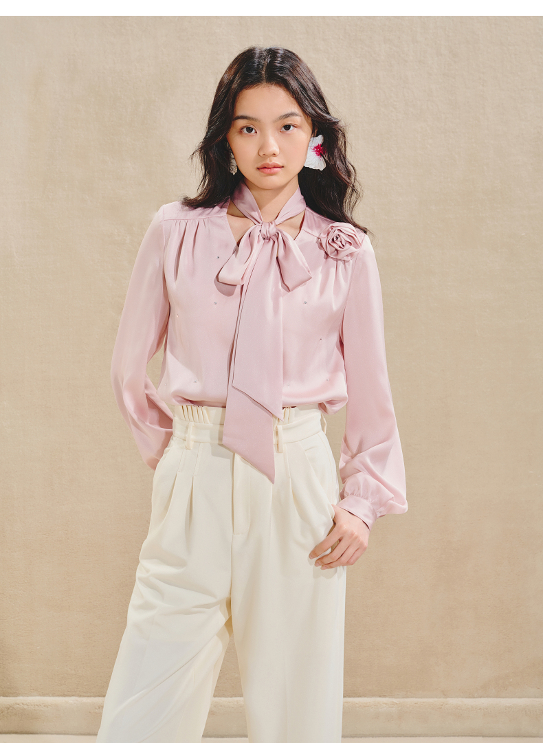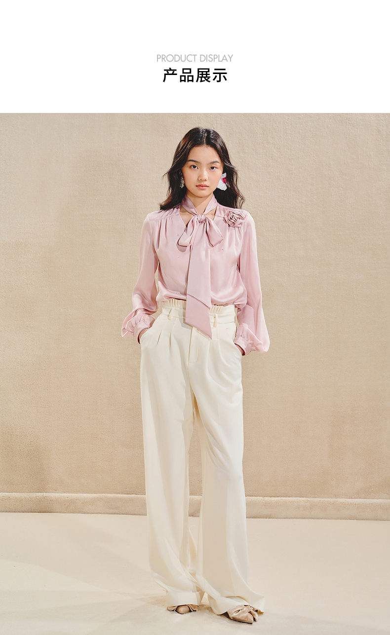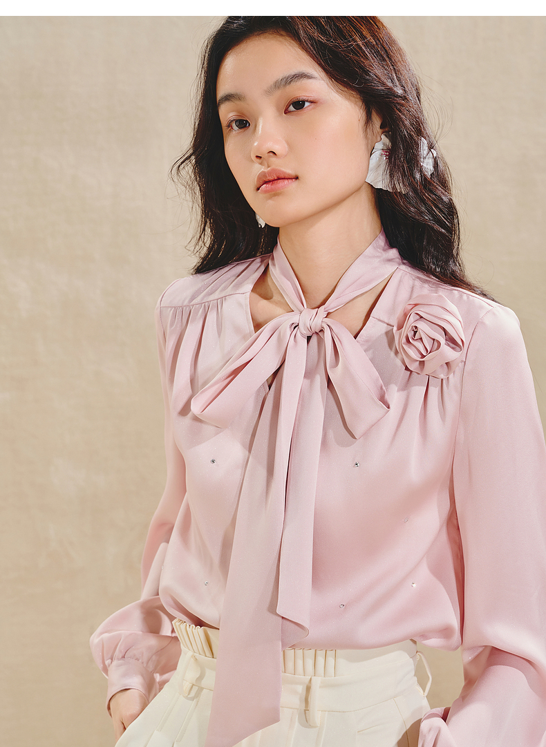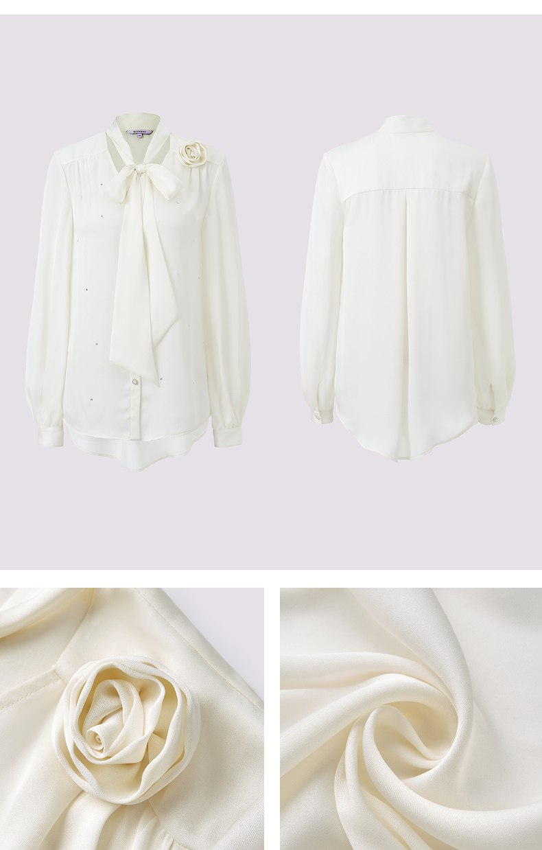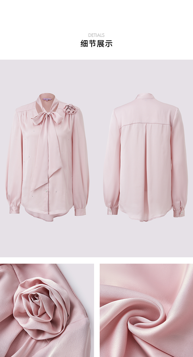 玛克门店发货:MAXRIENY优雅慵懒风缎面衬衫女立体玫瑰装饰上衣(货号:MS85TP503)