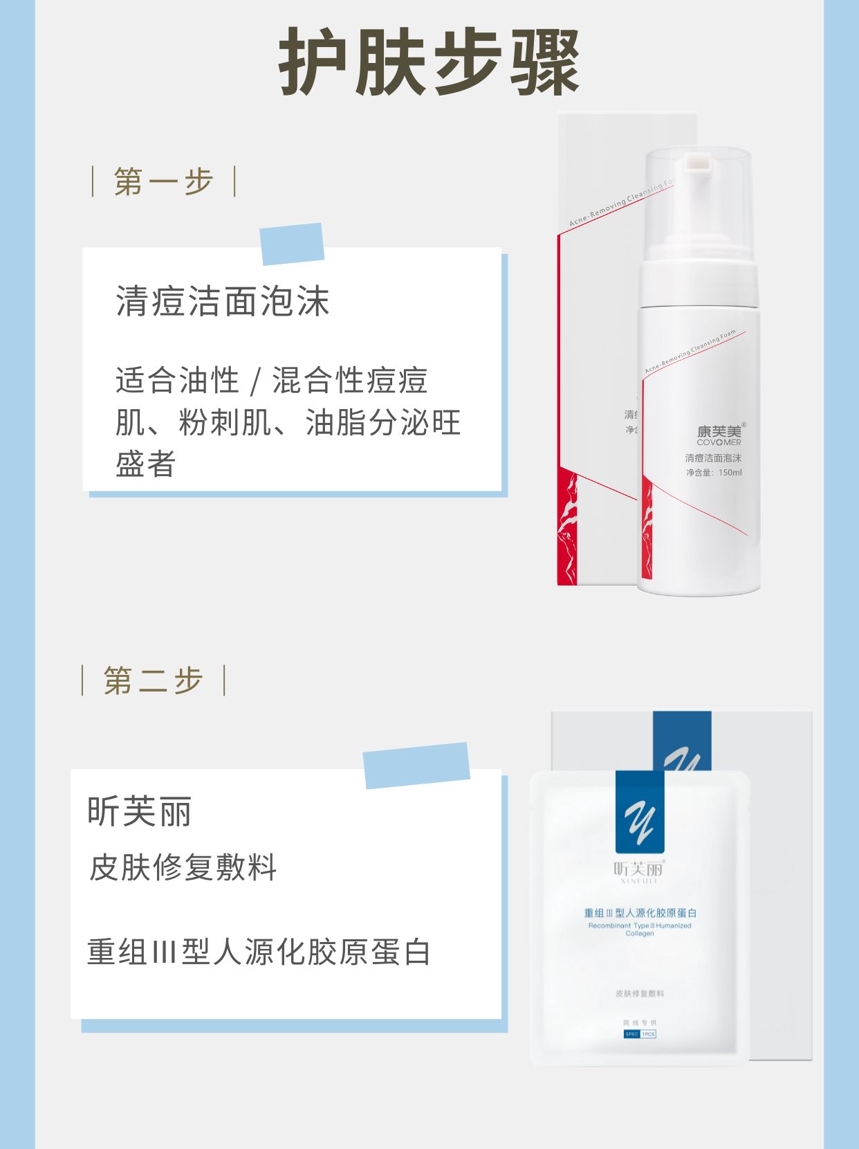 油性肌肤、痘痘肌肤套装:昕芙丽面膜+清痘洁面泡沫+清痘净颜爽肤水+特护乳80ml+绽妍防晒+壬二酸清痘凝胶
