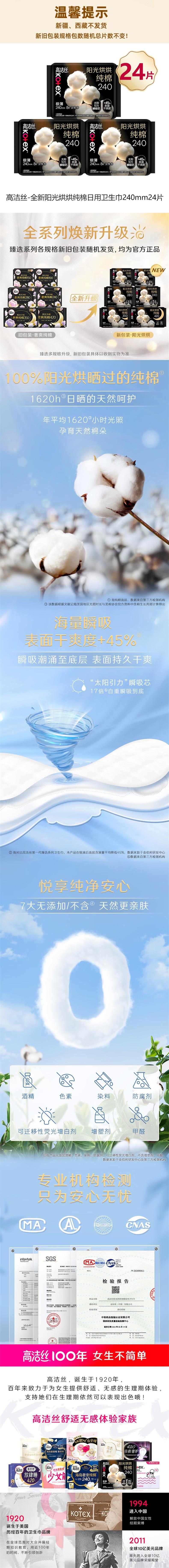 高洁丝 全新阳光烘烘纯棉日用卫生巾240mm8片*3包 JGS0HR8P3B