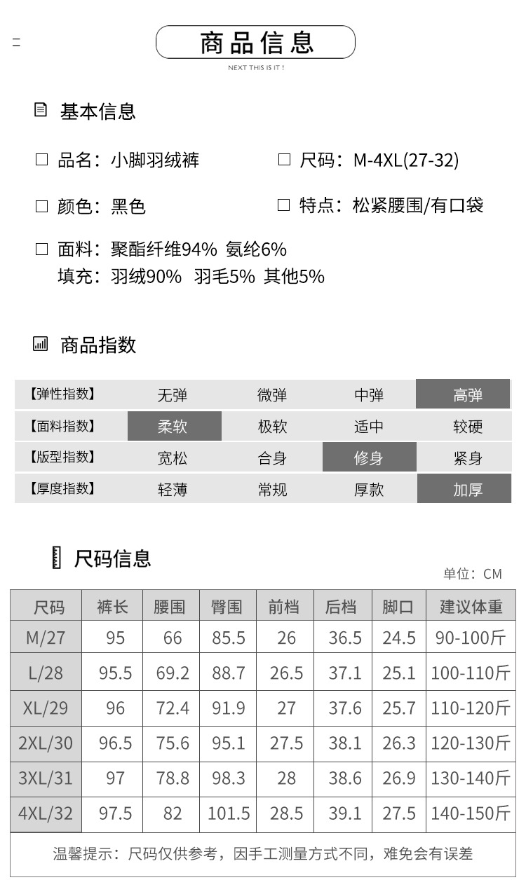 长款简约休闲时尚小脚羽绒裤冬款高腰修身通勤MYX-81085