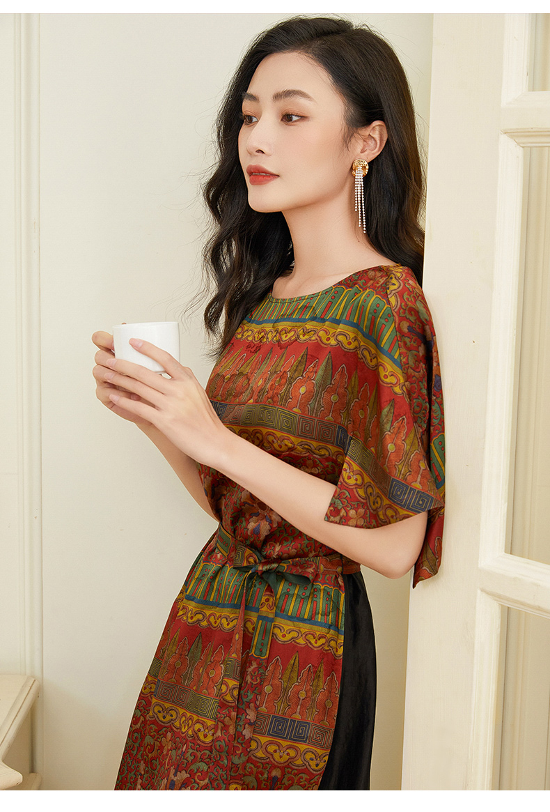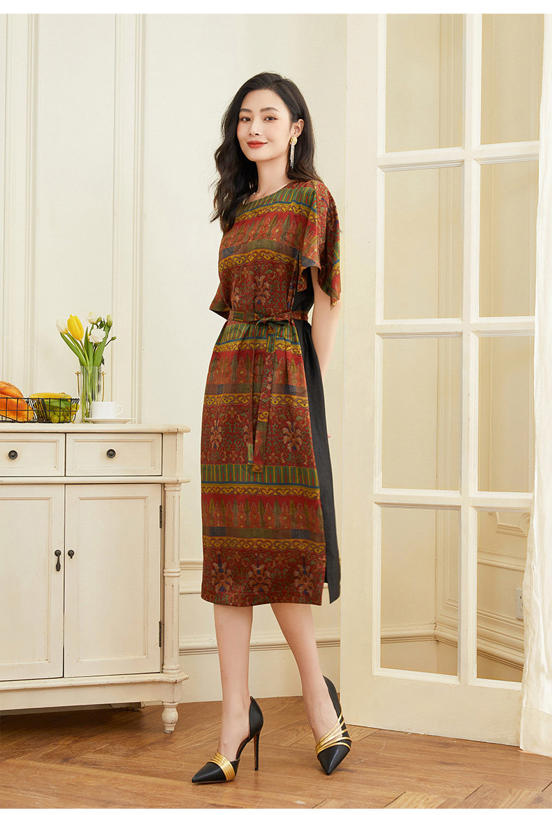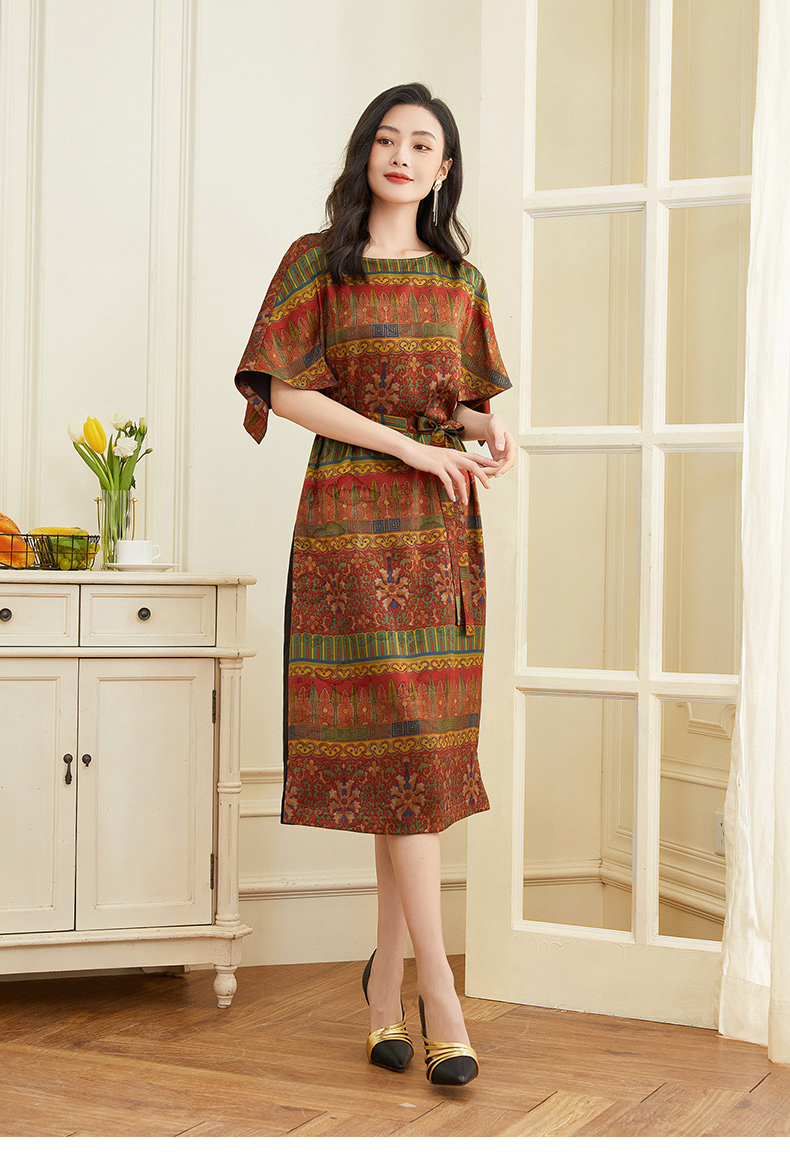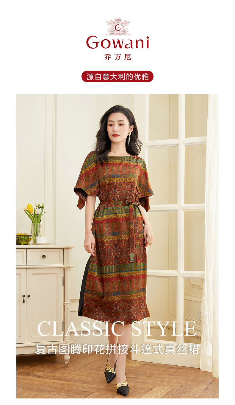 【绚丽图腾花】【香云纱】乔万尼真丝桑蚕丝连衣裙女新款夏季EF2E335