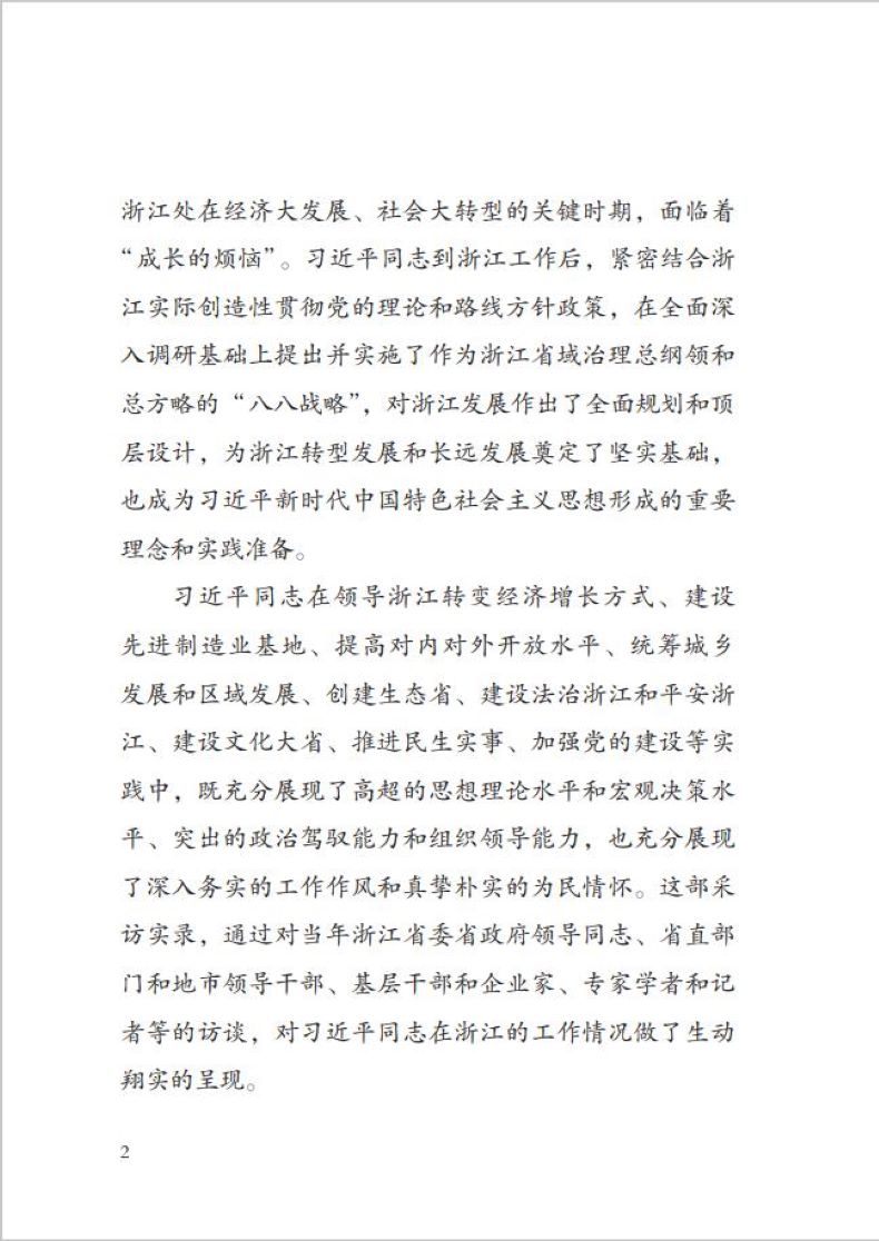 采访实录《在浙江》一书近日由中央党校出版社出版,在全国发行。2002年10月任浙江省委副书记、代省长,2002年11月到2007年3月任浙江省委书记、省人大会主任。进入新世纪,浙江处在经济大发展、社会大转型的关键时期,紧密结合浙江实际创造性贯彻落实党的理论和路线方针政策,在全面深入调研基础上提出并实施了作为浙江省域治理总方略的“八八战略”,对浙江发展作出了全面规划和顶层设计,为浙江转型发展和长远发展奠定了坚实基础,也成为新时代中国特色社会主义思想形成的重要理论准备和实践准备。作为省委书记全面领导了浙江工作。采访实录《在浙江》一书,通过对当年浙江省委和省领导同志、省直部门和地市领导干部、基层干部和企业家、专家学者和记者等的访谈,对领导浙江转变经济发展方式、提高对内对外开放水平、统筹城乡发展和区域发展、创建生态省、建设法治浙江和平安浙江、建设文化大省、推进民生实事、加强党的建设等方面的思考和实践做了具体呈现。这部采访实录,不仅集中展现了高超的思想理论水平和战略决策水平、突出的政治领导能力和组织协调能力,也充分展现了他真挚朴实的为民情怀和深入务实的工作作风,为领导干部在新时代新征程上深入学习领会新时代中国特色社会主义思想,胸怀“国之大者”,提高政治判断力、政治领悟力、政治执行力,提高领导能力和领导水平提供了生动教材。