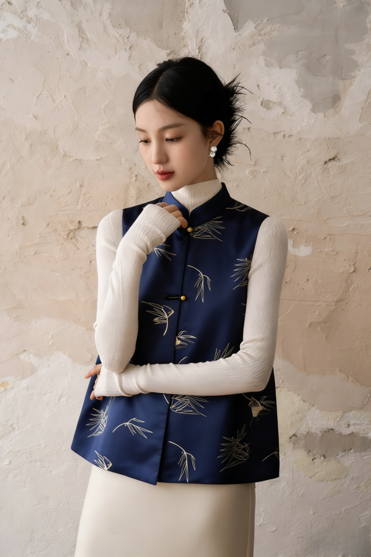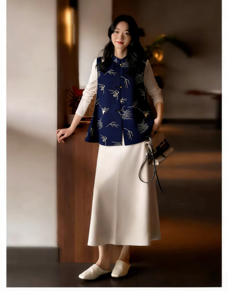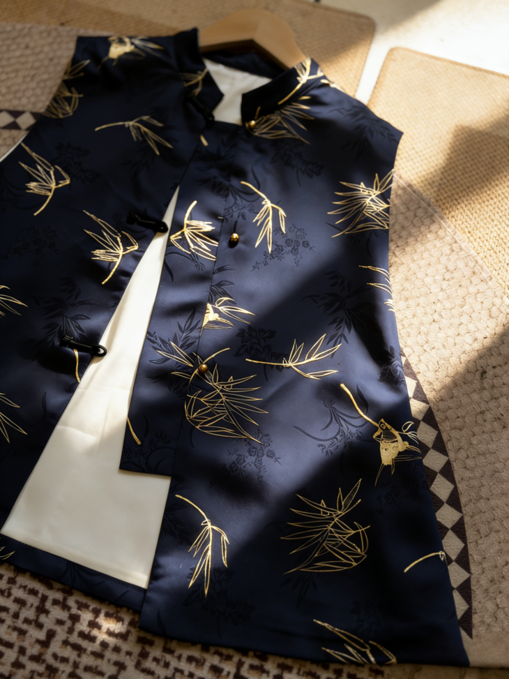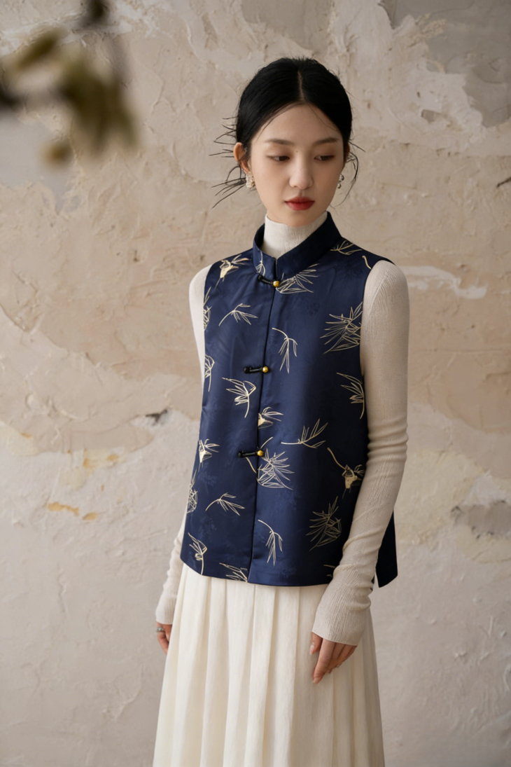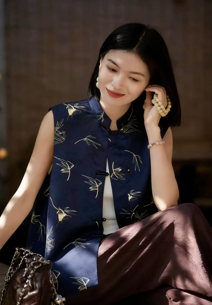 (清仓卖完即止!!)新中式「竹燕春晖」马甲, 设计师将燕子竹青的雅致韵味融入其中,媲美秀场上的高定款【3-7天发货,周末顺延】