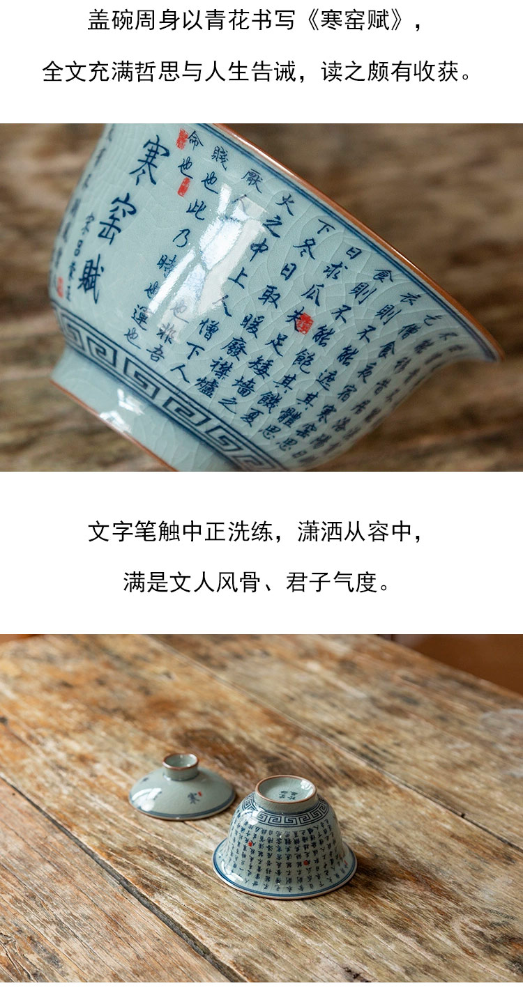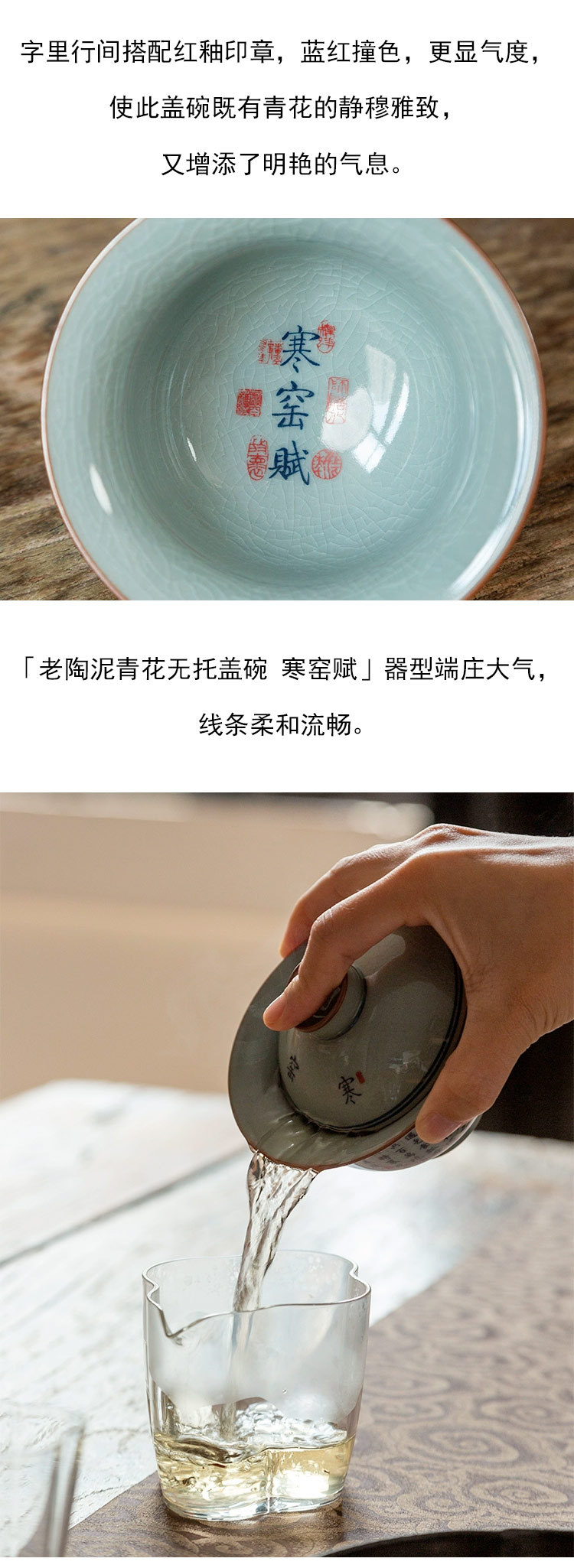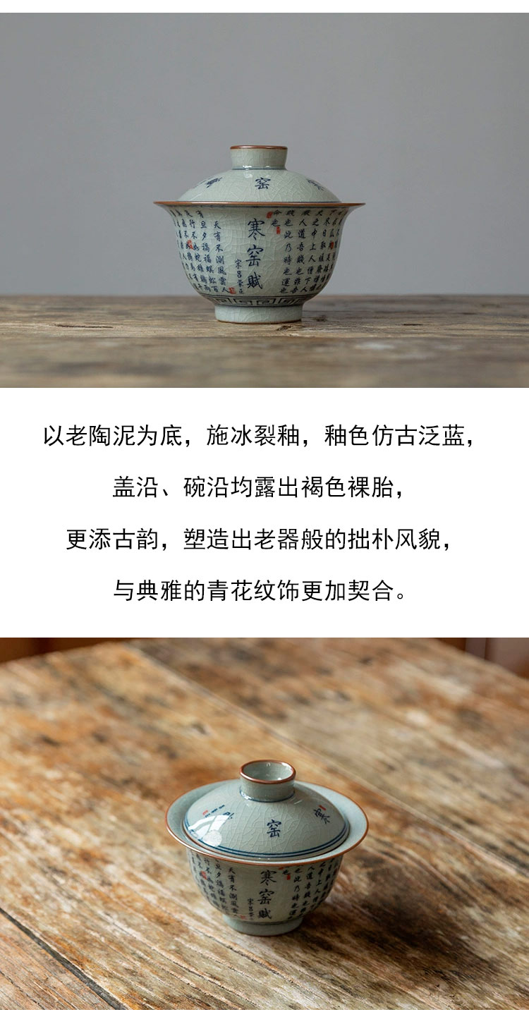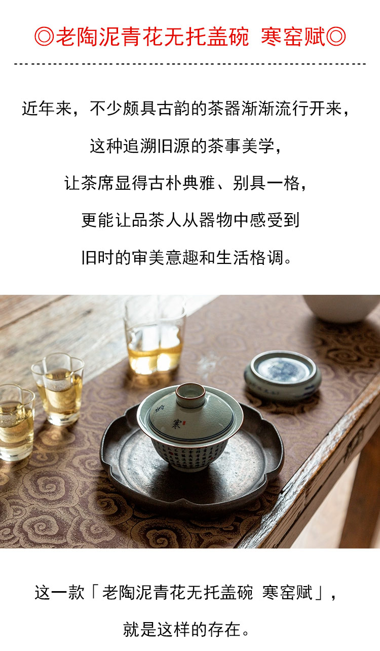 香记 老陶泥青花无托盖碗 寒窑赋 冰裂纹 可养可玩 性价比高