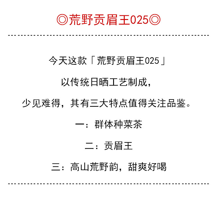 茶香记 荒野贡眉王025白茶群体种菜茶贡眉王高山荒野韵甜爽好喝