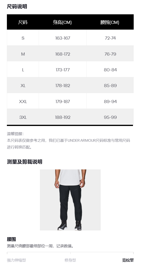 安德玛男子UA Unstoppable自在系列长裤1387778-001