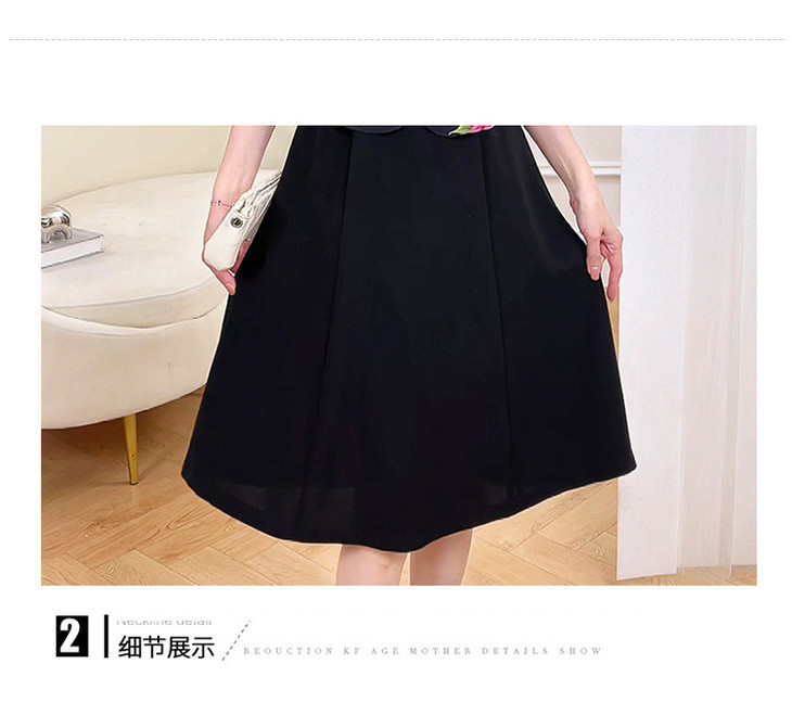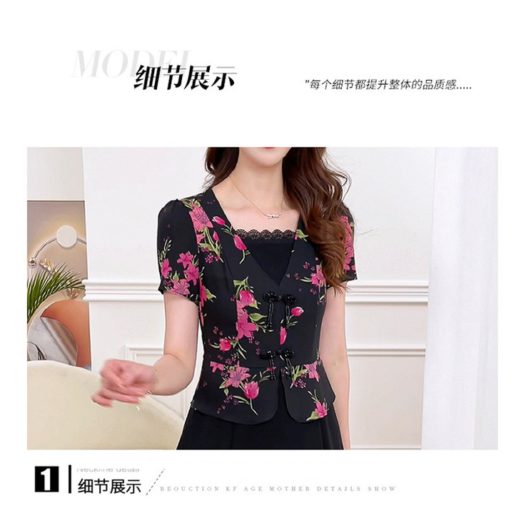 印花拼结短袖连衣裙女2024年夏季新款中式假两件中长款A字裙 商品图4